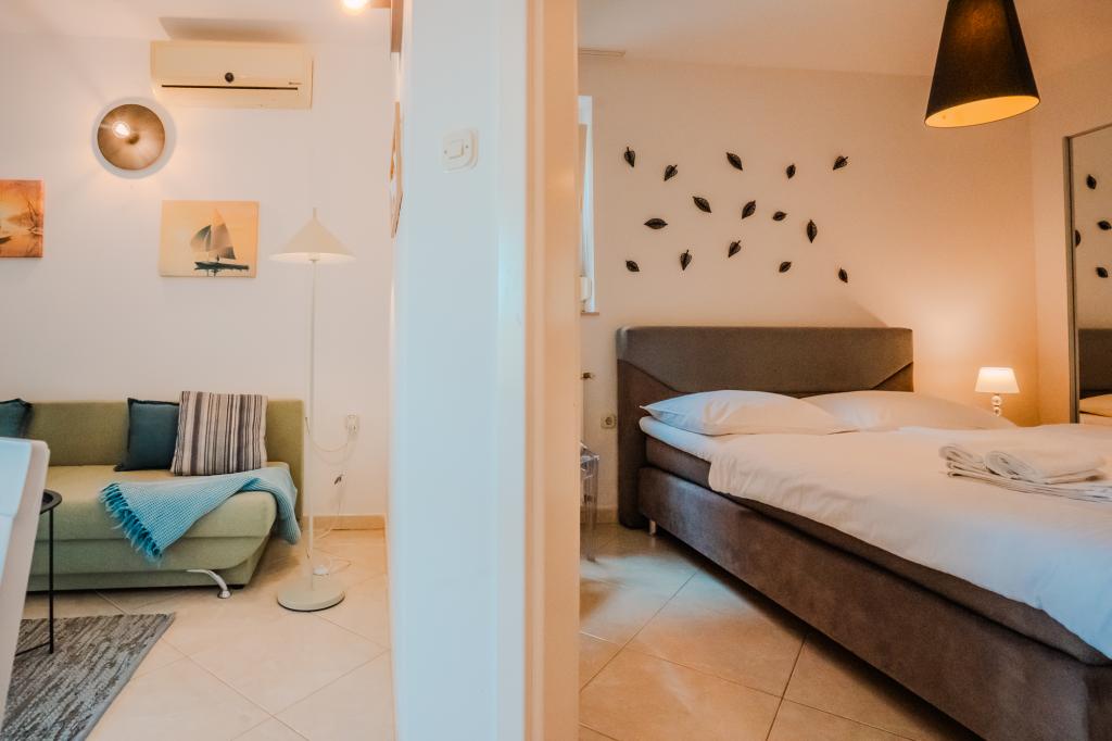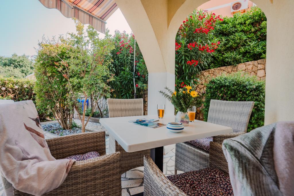 Četiri moderno uređena apartmana nalaze se u mirnom mjestu Čižići na otoku Krku, idealna za opušten obiteljski ili romantičan odmor. Apartmani 1 i 2 smješteni su u prizemlju i nude terase s ležaljkama okružene mirisnim mediteranskim zelenilom, dok apartman 2 dodatno ima grijani jacuzzi i lounge kutak u ugodnom hladu maslina. Apartmani 3 i 4 na katu imaju balkon s pogledom na more. Svi apartmani imaju klimatizaciju, besplatan Wi-Fi, SAT-TV, opremljenu kuhinju, kupaonicu, posteljinu, ručnike i osigurano besplatno parkiralište. Kućni ljubimci su dobrodošli. Plaža je udaljena 500 m.