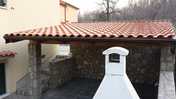 Apartmanu pripada vanjsko natkriveno mjesto površine 36m2 s roštiljem, jedaćim stolom .