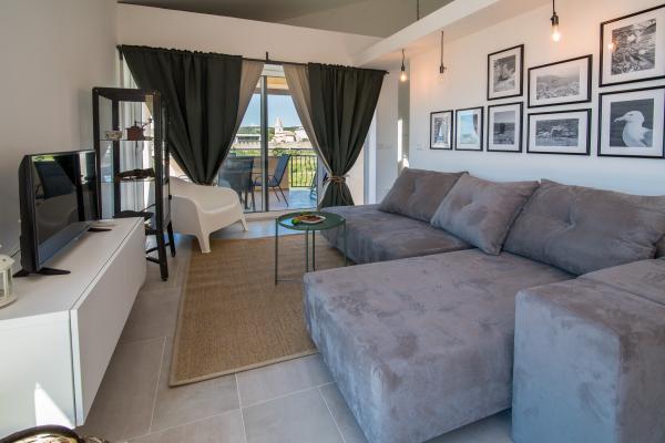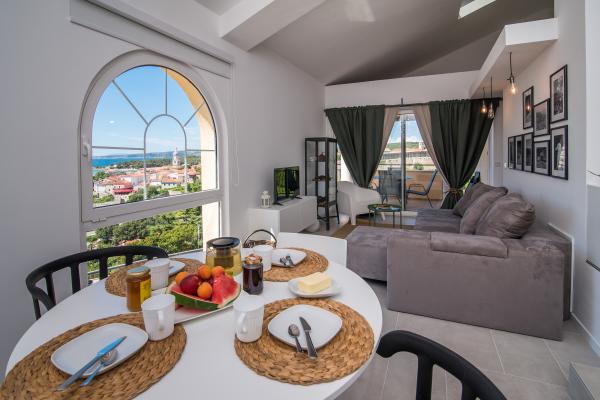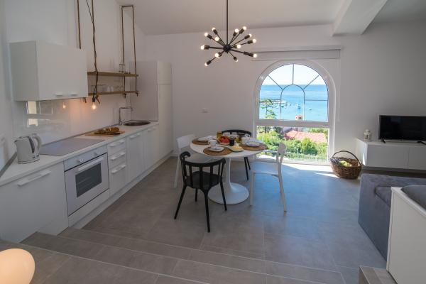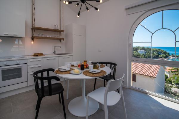 Ovaj apartman nalazi se 2 minute hoda od plaže i starog grada. Pruža jedan od najljepših pogleda na stari grad. Ima besplatan parking. Opremljen je s TV-om ravnog ekrana, klimom te besplatnim WIFI. Kuhinja sadrži perilicu suda, kuhalo za kavu i toplu vodu, mikrovalnu, pećnicu, osim navedenog apartman je opremljen i perilicom rublja te kupaonom i manjim wc-om.