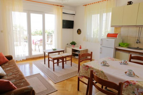 Pročitaj više Smještajne jediniceUpite i rezervacije, molimo vas pošaljite e-mailom. Cijenu šaljemo na upit gosta. U cijenu je uključena: boravišna pristojba, registracija gosta, eko taksa, završno čiščenje apatrtmana, upotreba posteljine, korištenje vode i struje. Posteljina se mijenja jednom tjedno, ili prema potrebi. Ručnici za plažu ne nalaze se u apartmanu. Molimo vas ponesite svoje. Parkiralište i internet su besplatni. Za boravak kraći od 4 noći cijena se uvećava 30%. Upotreba pomočnog ležaja naplaćuje se 10. 00€ po danu. Za potvrdu registracije potrebno je uplatiti akontaciju. Dolazak u apartman moguć ja svakog dana poslije 14. 00 do 22. 00. sati. Odlazak iz apartmana je do 10. 00 sati na dan odlaska. U apartman ne primamo kućne ljubimce.