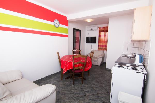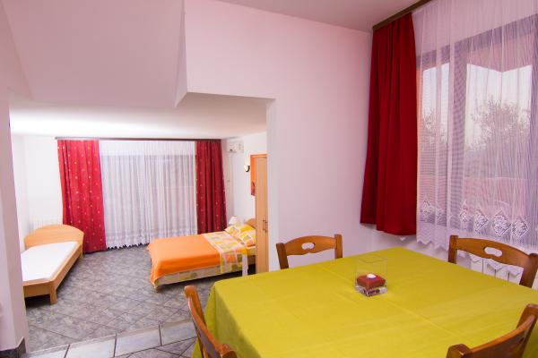 Kompletno i suvremeno opremljeni apartmani u mirnom predjelu grada Krka. Objekt se nalazi 5 minuta hoda od centra, plaže, teniskih terena.