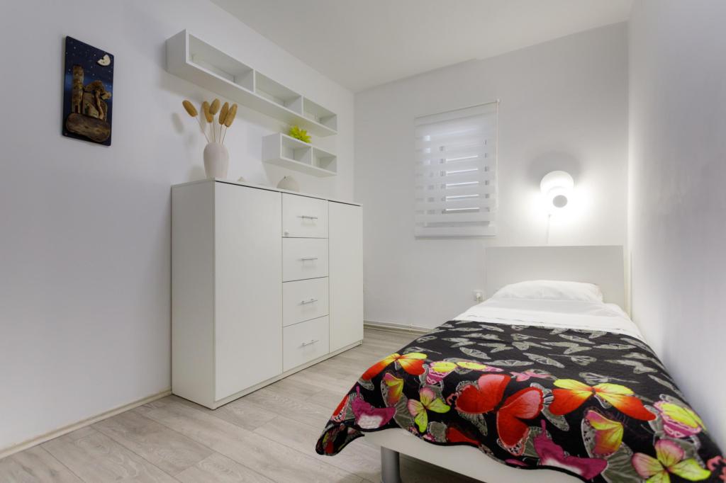 Kompletno opremljeni apartmani u mirnom dijelu grada Krka svega 3 minuta pješke do centra i 7 minuta pješke do plaže.
