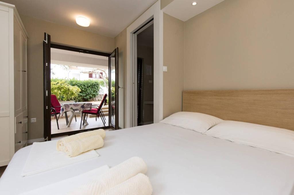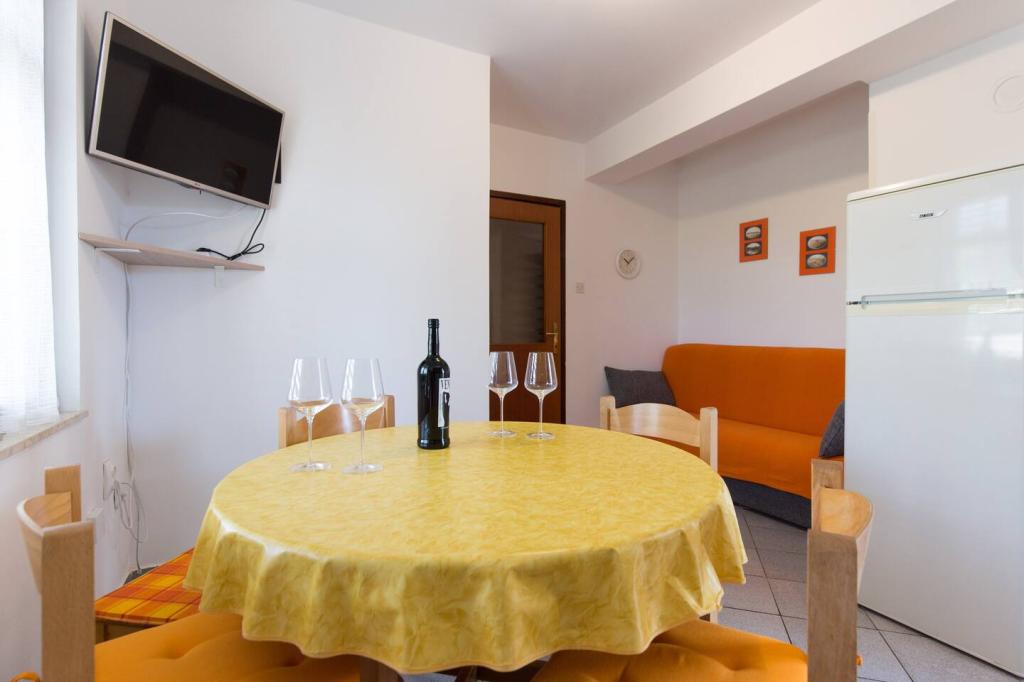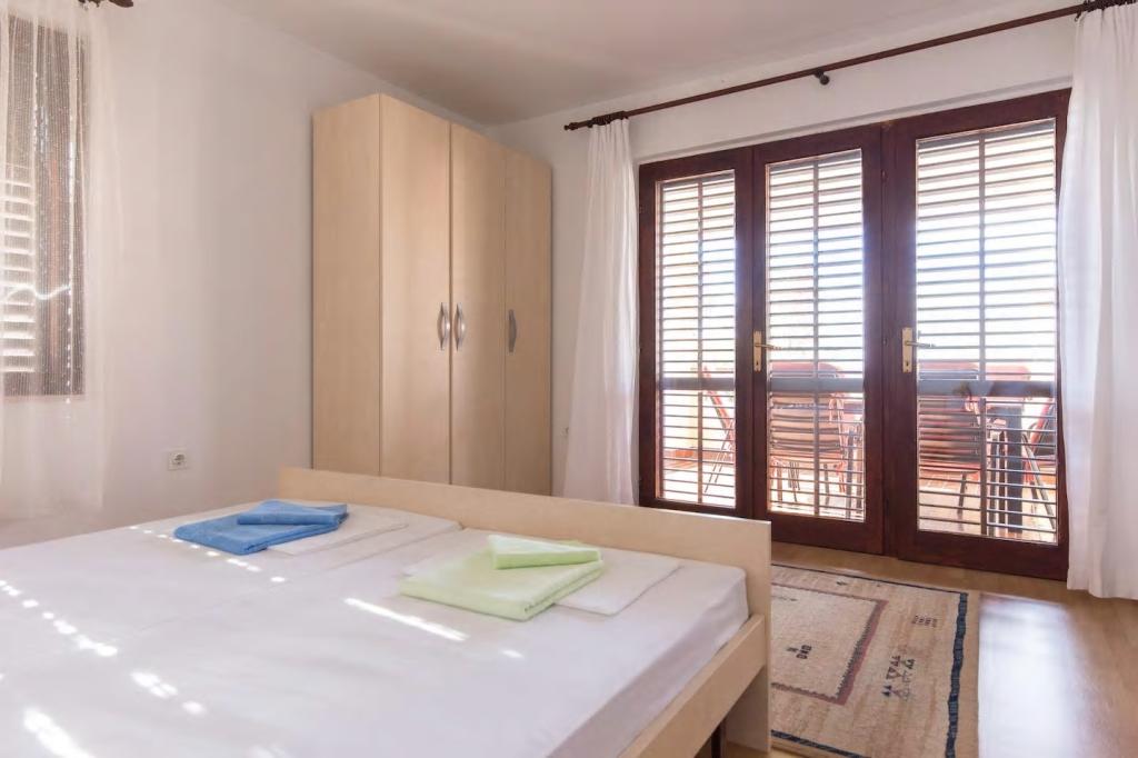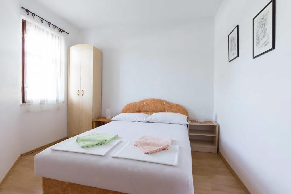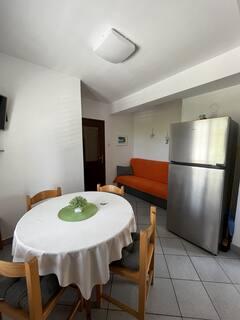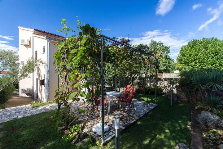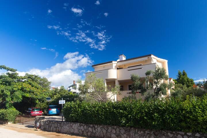Naši apartmani nalaze se u gradu Krku i udaljeni su 200 m od plaže (5 minuta hoda), te 900 m od kulturno-povijesnog središta grada (15 minuta hoda). U blizini se nalaze šljunčane, stjenovite i pješčane plaže te sportski objekti. Apartman 3, veličine 22m2 (studio) je za 2 osobe. Apartman se nalazi na prvom katu sa zasebnim ulazom i otvara se u vrt gdje se nalazi set sjedala dostupnih samo gostima iz Apartman 3. Apartman ima tlocrt studija s francuskim krevetom 160x200 (za 2 osobe). Ima kupaonicu s tuš kabinom i potpuno opremljenu kuhinju sa stolom za blagovanje, hladnjak s dubokim zamrzivačem, štednjak (struja), mikrovalnu pećnicu, aparat za filter kavu, kuhalo za vodu, pribor za jelo. Apartman također ima: kabelsku TV, besplatan WiFi flat Internet, i klima uređaj s ručnim upravljanjem, sef za dragocjenosti/ osobne dokumente.