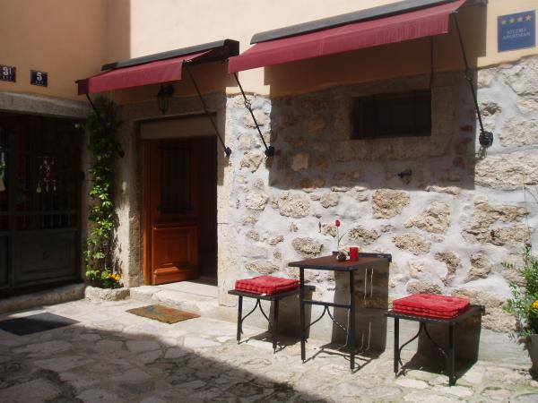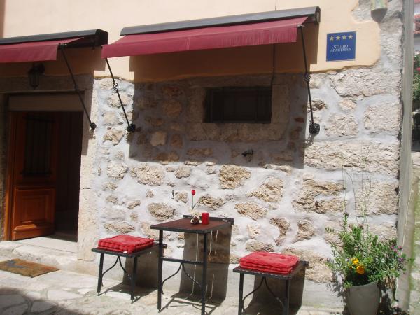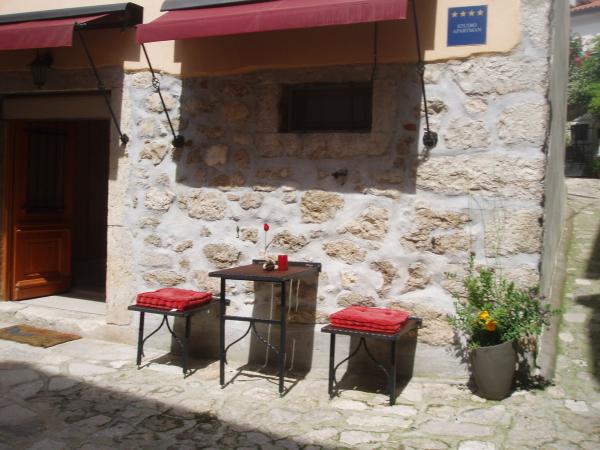 Krk centar, urbana vila. Apartmani 4 zvjezdice, namješteni u rustikalno stilu, sa modernom opremnjenom, kuhinja, klimom, tv sat. Vila se nalazi u srcu starog grada a u mirnom dijelu ulice, samo 70 metara od plaže. Parking u blizini na privatnom parkingu.