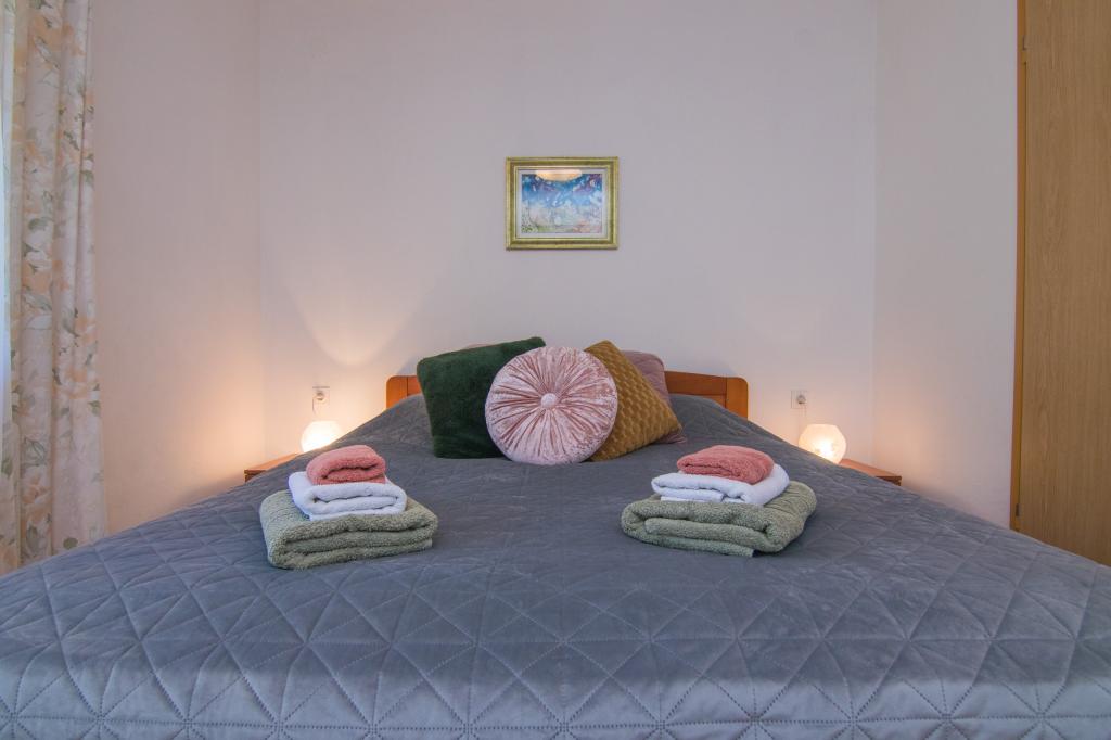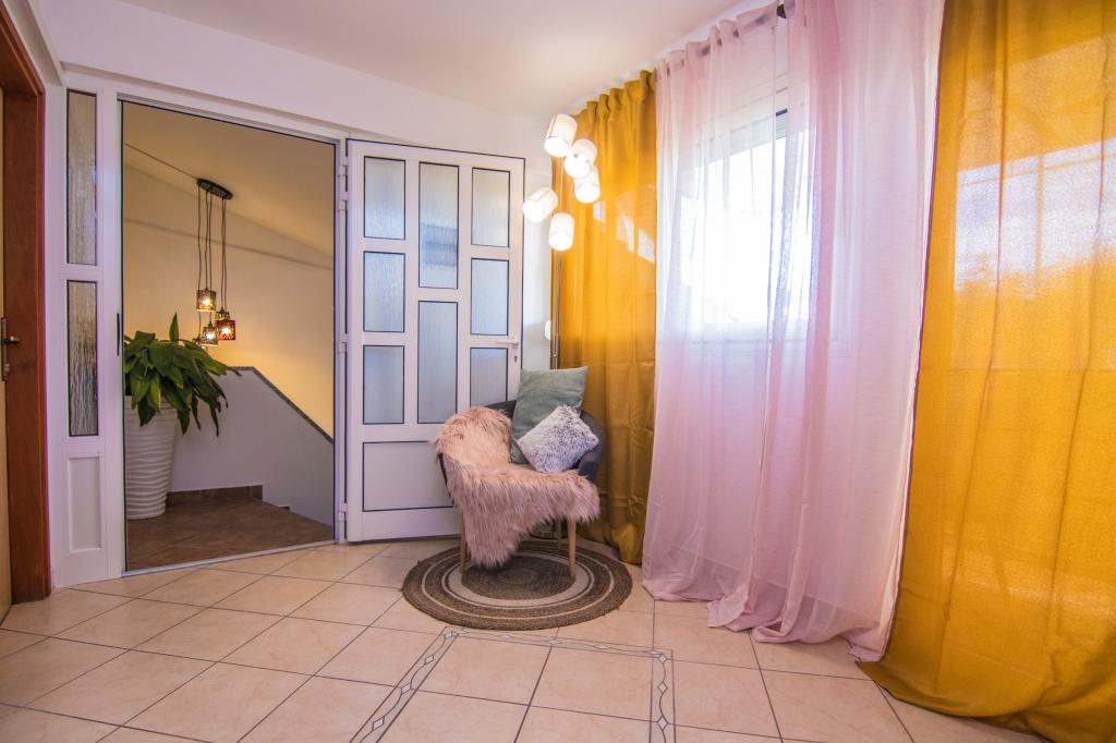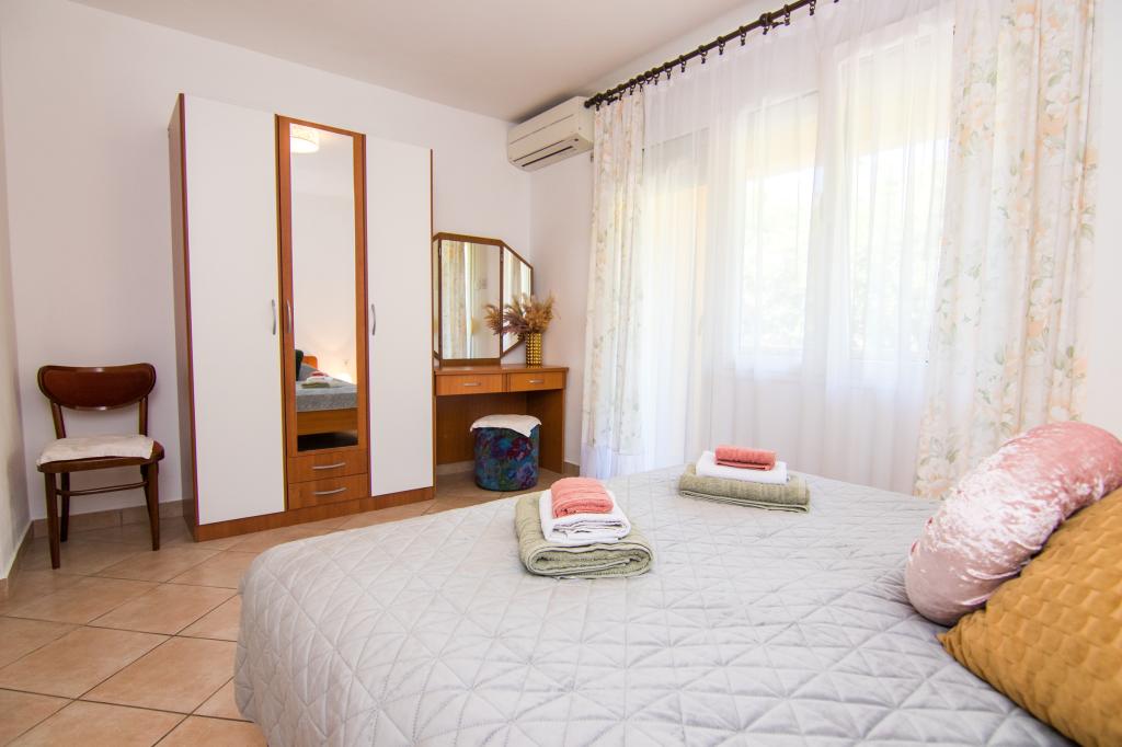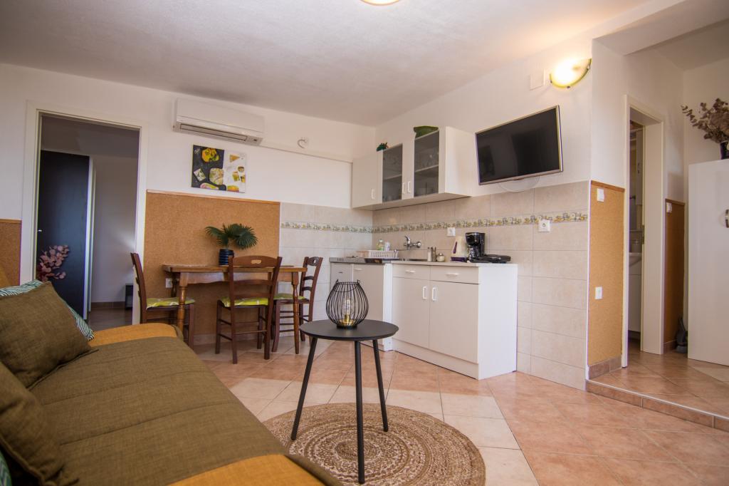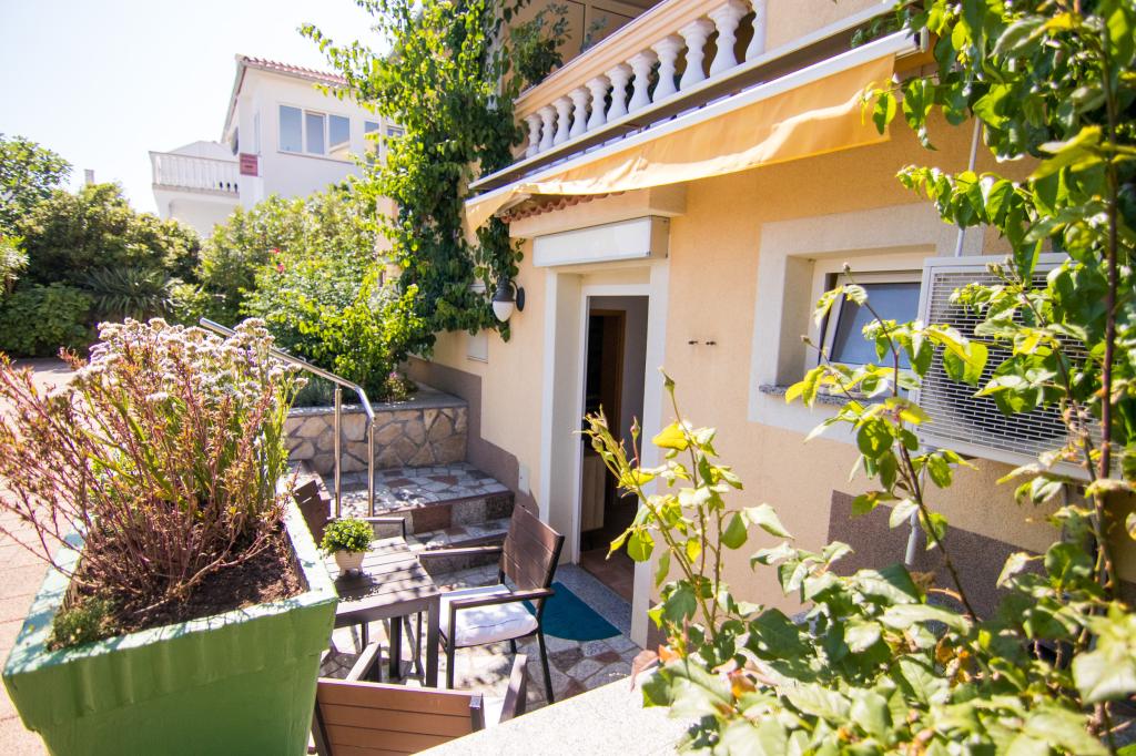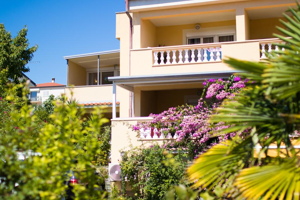Kuća se nalazi u samom centru mjesta udaljena samo 90 m od mora i prekrasne šetnice na kojoj se nalaze mnogobrojni restorani, kafići i ostali sadržaji. Gosti mogu u blizini kuće pronaći trgovine, banku, poštu, ljekarnu i slično. Okućnica kuće je prostrana gdje ima dovoljno mjesta za parking automobila gostiju. Okružena je mediteranskim biljkama i cvijećem. Gosti mogu koristiti i zajednički roštilj koji se nalazi iza kuće. Svi apartmani imaju terasu ili balkon, a neke jedinice imaju čak i dvije terase, odnosno dva balkona. Susjedstvo je mirno i sigurno. Iz nekih se apartmana vidi more. Svaka jedinica ima klimu, TV sa satelitskim programima, internet te filter aparat za kavu.