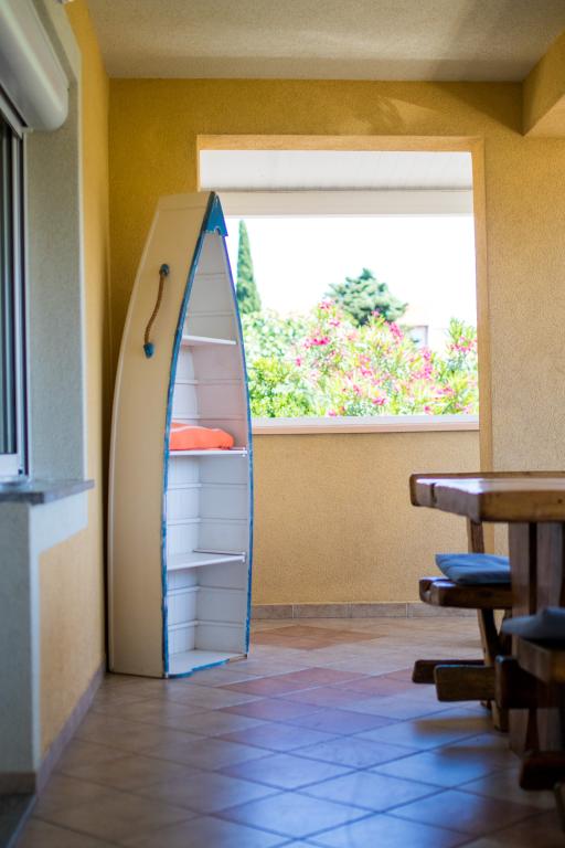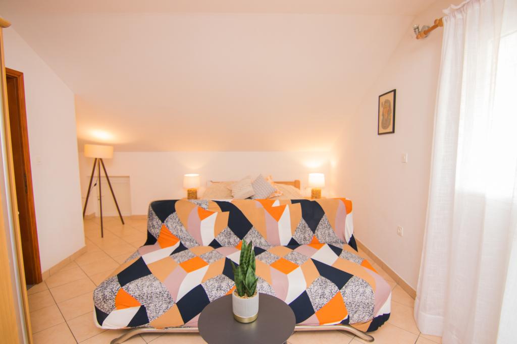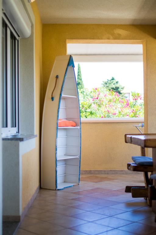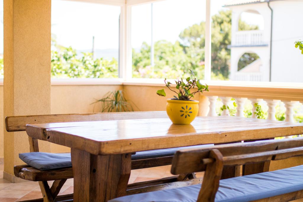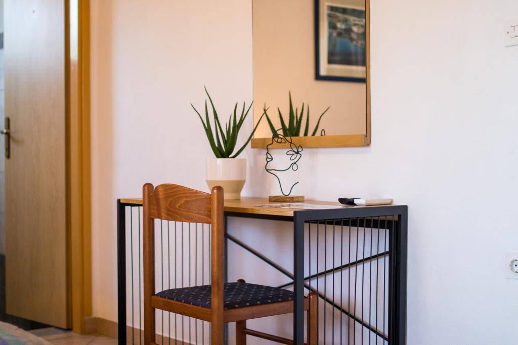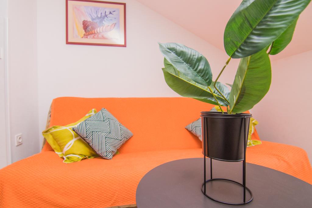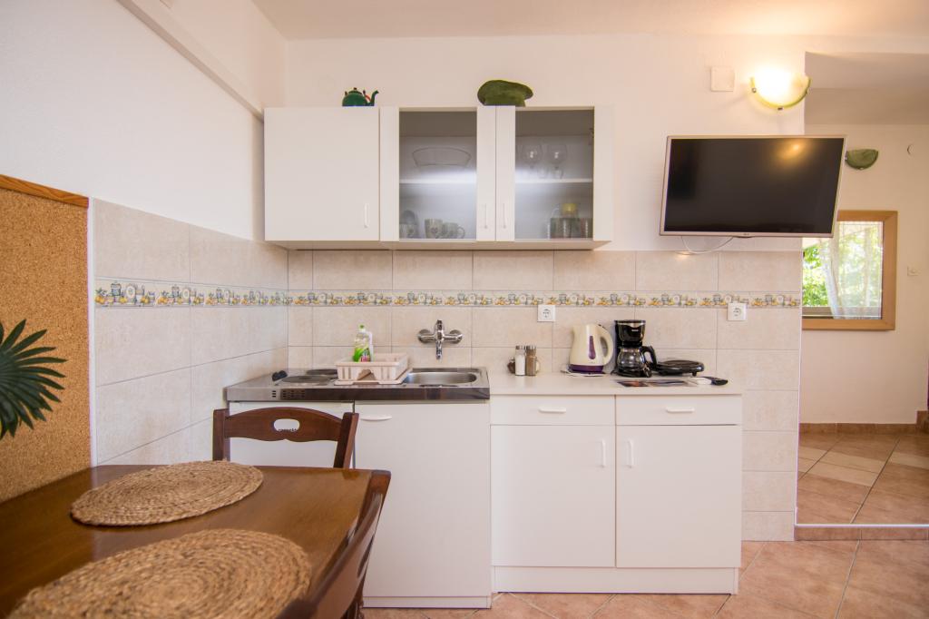 Kuća se nalazi u samom centru mjesta udaljena samo 90 m od mora i prekrasne šetnice na kojoj se nalaze mnogobrojni restorani, kafići i ostali sadržaji. Gosti mogu u blizini kuće pronaći trgovine, banku, poštu, ljekarnu i slično. Okućnica kuće je prostrana gdje ima dovoljno mjesta za parking automobila gostiju. Okružena je mediteranskim biljkama i cvijećem. Gosti mogu koristiti i zajednički roštilj koji se nalazi iza kuće. Svi apartmani imaju terasu ili balkon, a neke jedinice imaju čak i dvije terase, odnosno dva balkona. Susjedstvo je mirno i sigurno. Iz nekih se apartmana vidi more. Svaka jedinica ima klimu, TV sa satelitskim programima, internet te filter aparat za kavu.