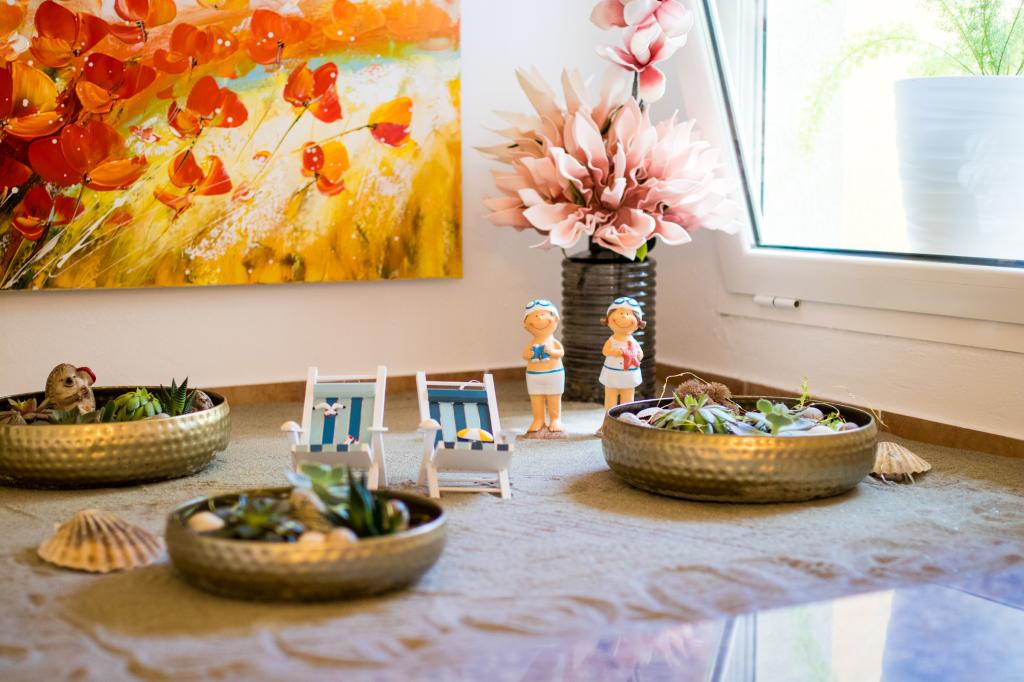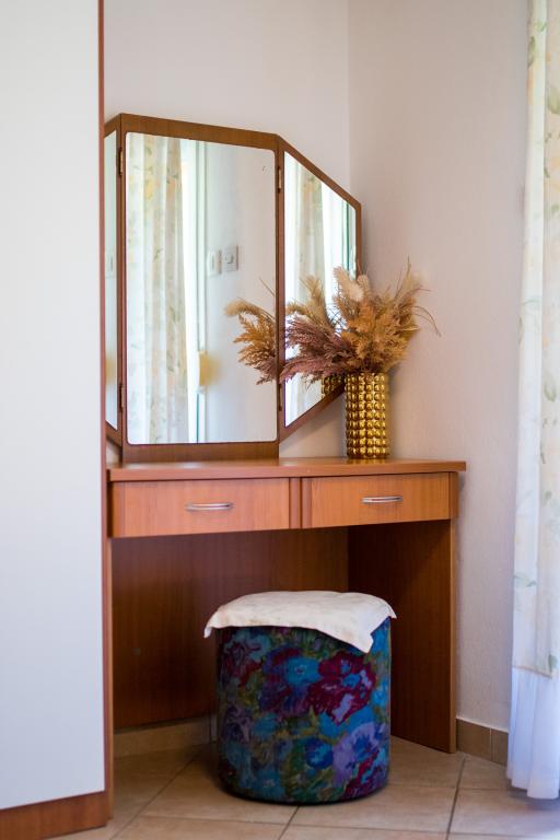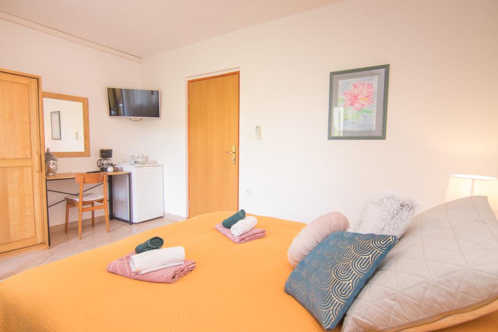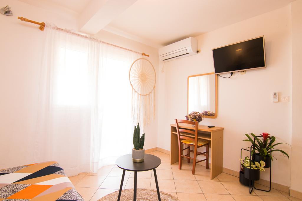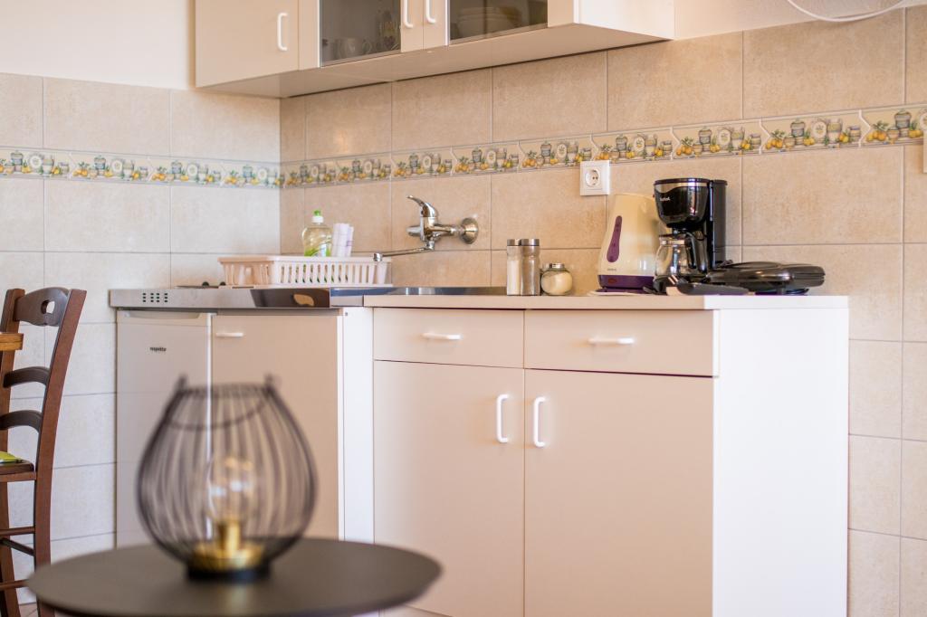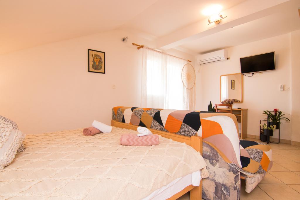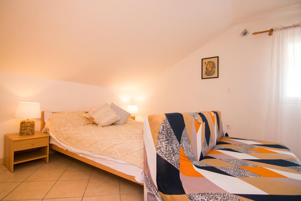 Kuća se nalazi u samom centru mjesta udaljena samo 90 m od mora i prekrasne šetnice na kojoj se nalaze mnogobrojni restorani, kafići i ostali sadržaji. Gosti mogu u blizini kuće pronaći trgovine, banku, poštu, ljekarnu i slično. Okućnica kuće je prostrana gdje ima dovoljno mjesta za parking automobila gostiju. Okružena je mediteranskim biljkama i cvijećem. Gosti mogu koristiti i zajednički roštilj koji se nalazi iza kuće. Svi apartmani imaju terasu ili balkon, a neke jedinice imaju čak i dvije terase, odnosno dva balkona. Susjedstvo je mirno i sigurno. Iz nekih se apartmana vidi more. Svaka jedinica ima klimu, TV sa satelitskim programima, internet te filter aparat za kavu.