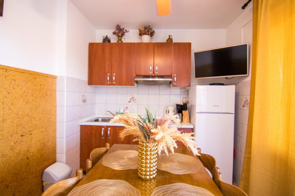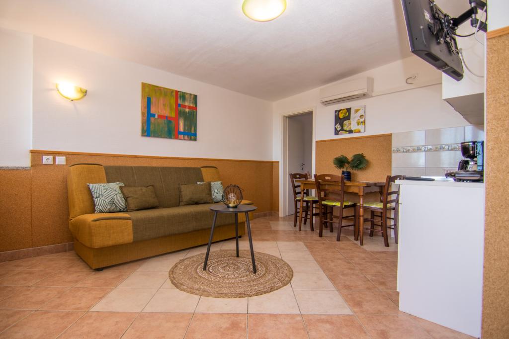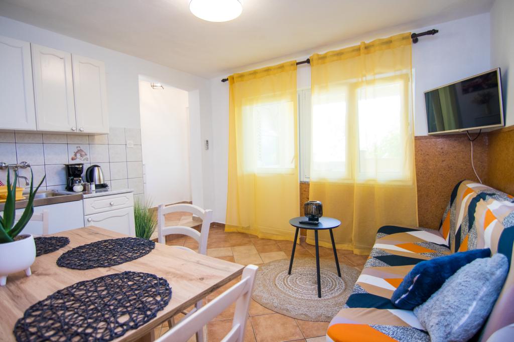Pročitaj više Smještajne jediniceIskazane cijene su s uključenim taxama i pristrojbama, a jedini extra trošak je naknada za čišćenje 30 eur. Check in - Check out 14:00 - 10:00 Check In prije 14.00 sati nije moguć te ako gosti dođu prije tog vremena mogu parkirati auto na obližnjim javnim parkinzima te čekati vrijeme predviđeno za check In. Check Out je do 10 sati ujutro te se od gostiju očekuje da do tada napuste apartman i maknu auto s parkinga. Dan ranije molimo goste da nas kontaktiraju s okvirnim vremenom dolaska kako bi se mogli organizirati za check In. Akontacija za rezervaciju je sto eura, a ostatak novaca gosti plaćaju kod dolaska i to isključivo u gotovini. Kucni ljubimci nisu dozvoljeni.