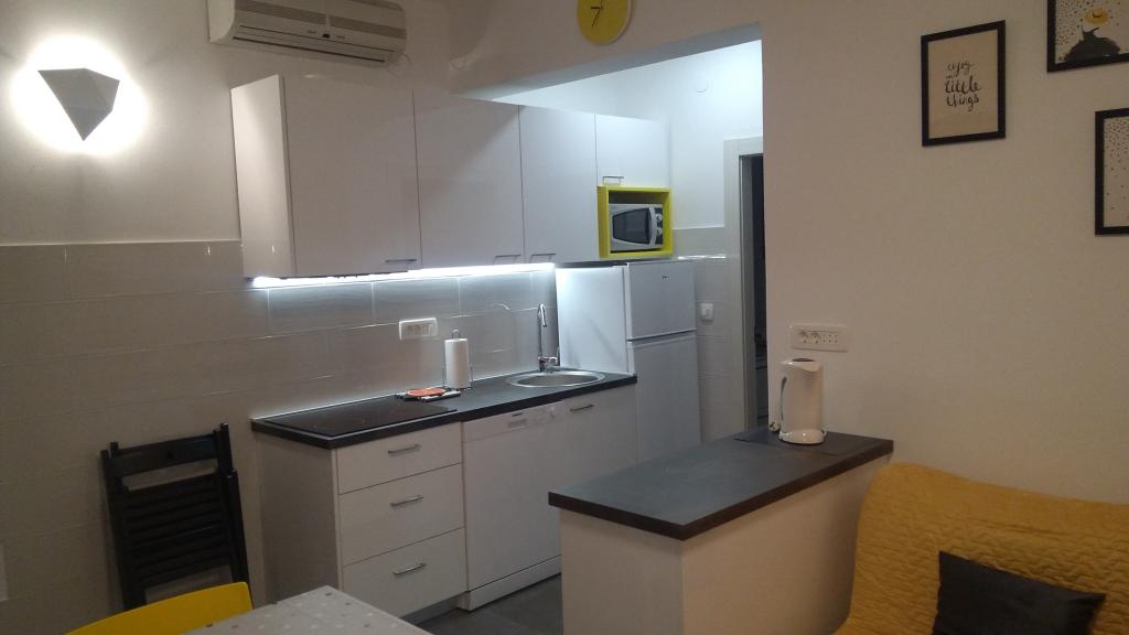 Apartman je nadmašio sva naša očekivanja! Dočekala nas je vrlo simpatična mlada dama! Tu smo boravili zadnji tjedan lipnja, bilo nas je troje, ali četvero je moglo udobno stati. Apartman je opremljen sa svime što je potrebno, kuhinja sa potpuno novim posuđem. Perilica posuđa jednostavno je blistala iznutra! (Ponijela sam nešto kuhinjskog pribora, ali ništa mi nije trebalo jer je sve bilo u stanu). Dočekala nas je blistava čistoća u svakoj sobi! Kreveti su također bili izuzetno udobni. Okruženje apartmanske kuće također je vrlo sofisticirano, okruženo mnogim prekrasnim biljkama i cvijećem. Do mora je bilo tek nekoliko minuta hoda, a do centra grada nije trebalo više od četvrt sata! Preporučam svima koji traže sofisticirano, dobro opremljeno, mirno mjesto za odmor! Vratit ćemo se!