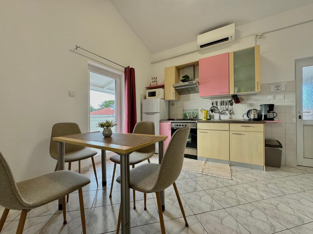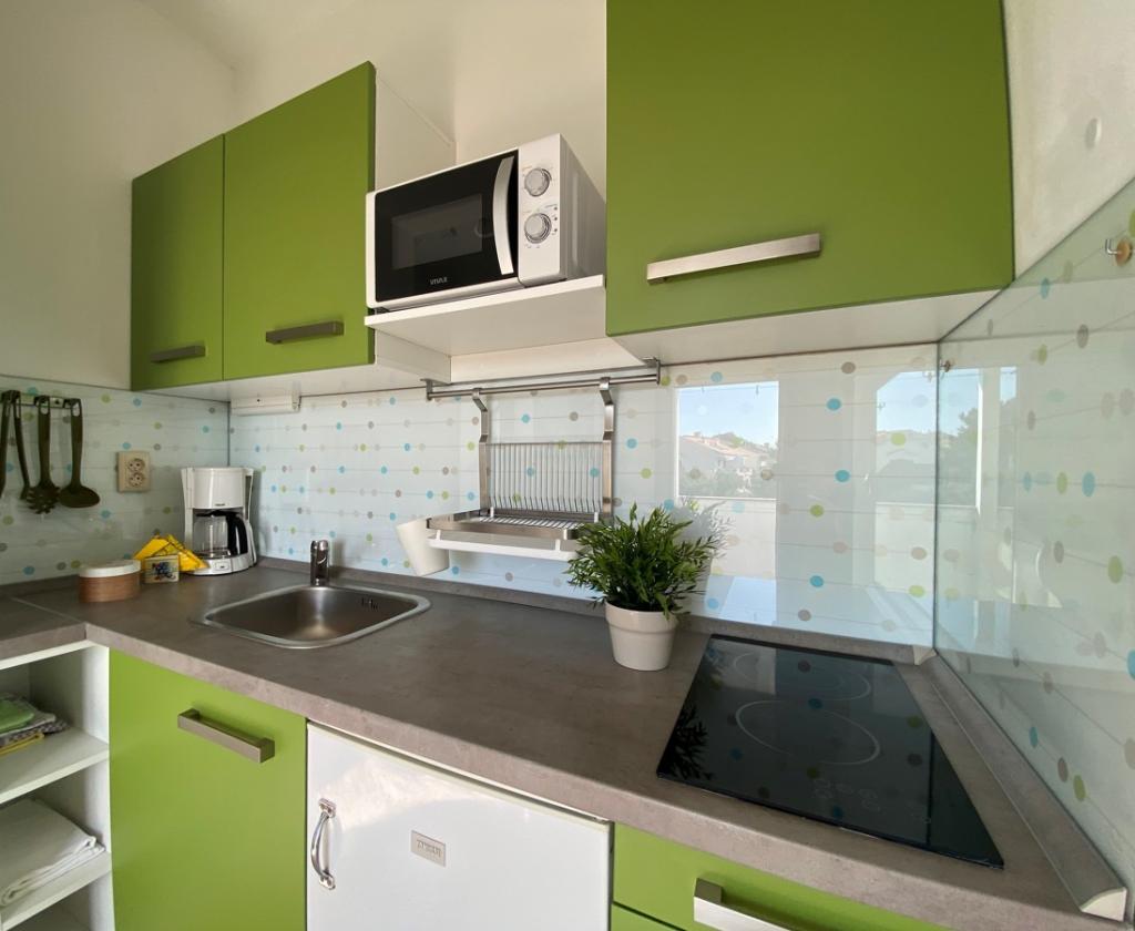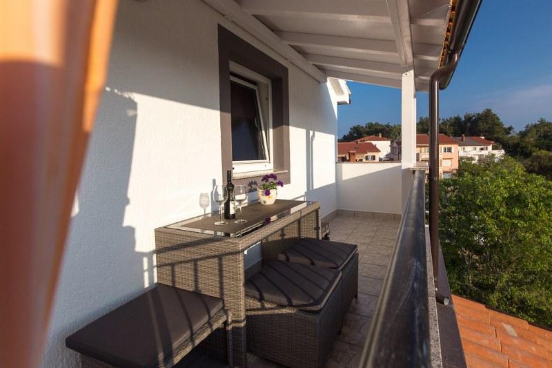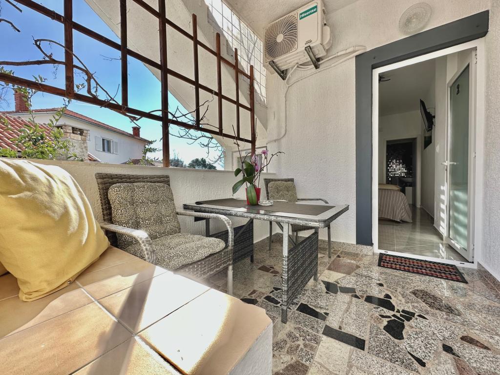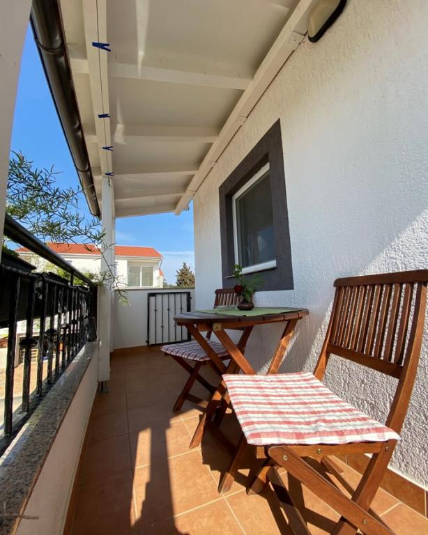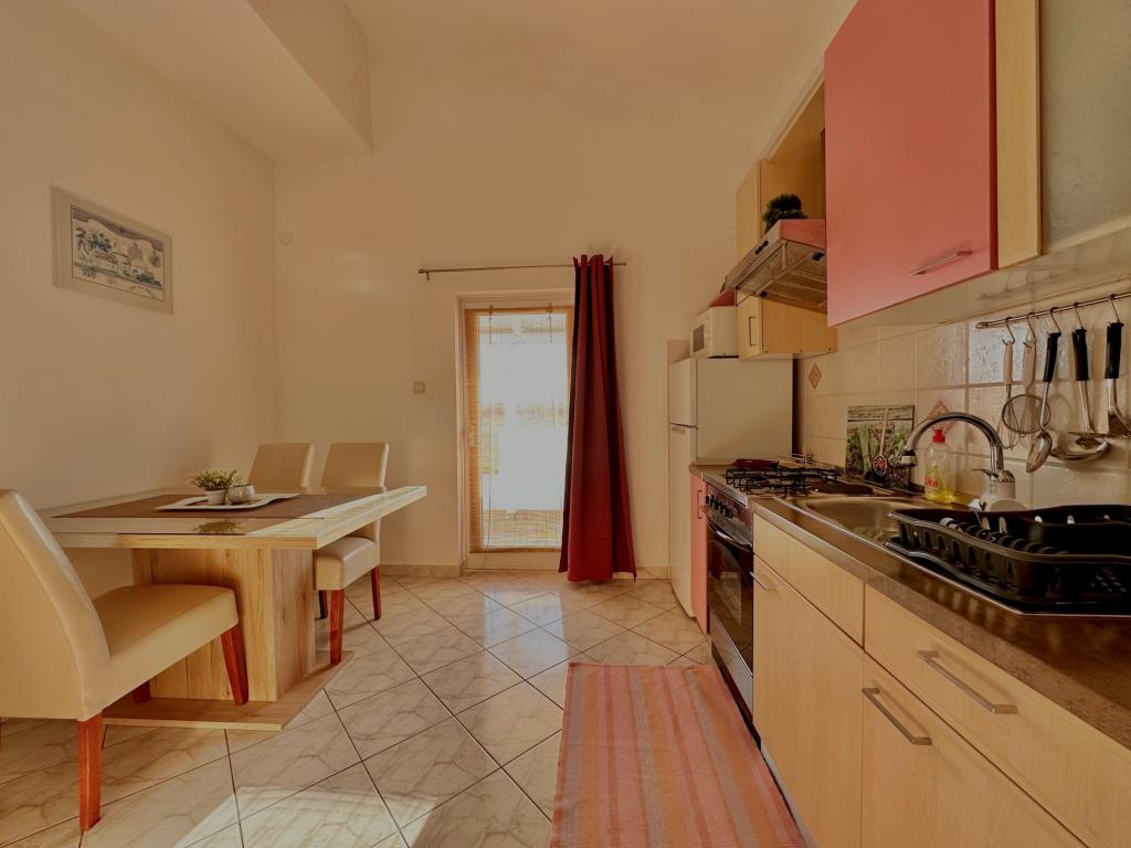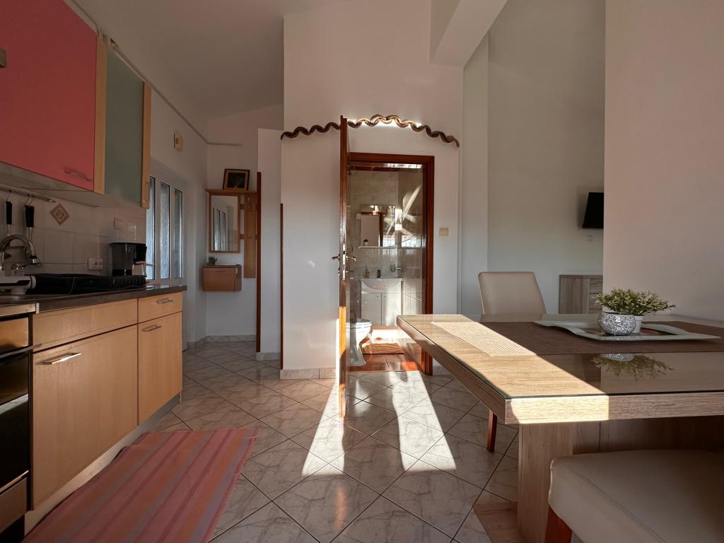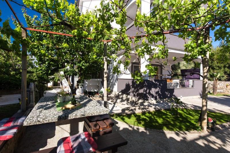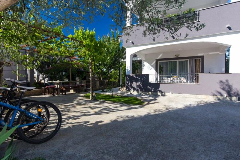 Kuća se nalazi na vrlo atraktivnoj lokaciji, u mirnom susjedstvu, nekoliko minuta hoda od plaže i desetak minuta hoda do centra grada. Objekt se sastoji od 5 apartmana: - Tri studio-apartmana za 2 osobe - jedan apartman za do 3 osobe - apartman od 75 kvadratnih metara za do 5 osob. Svaki apartman ima opremljenu kuhinju, balkon ili terasu, privatni ulaz i osigurano parkirno mjesto u sklopu objekta. Gostima je na raspolaganju zajednički vrt s plinskim roštiljom.