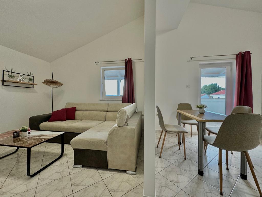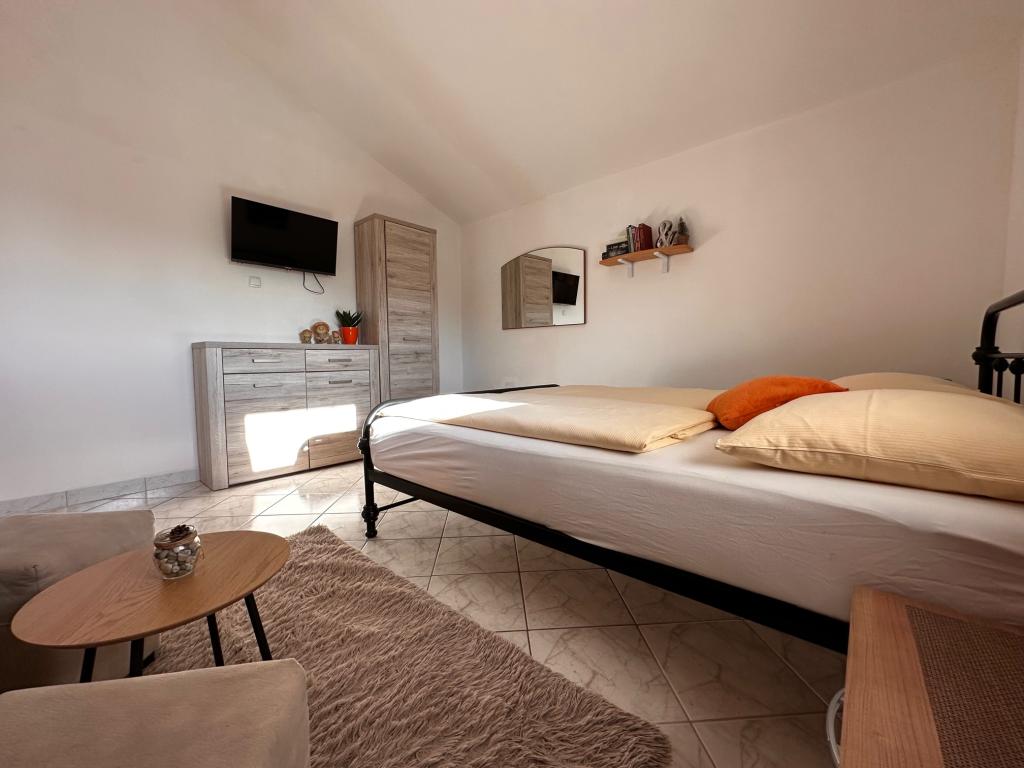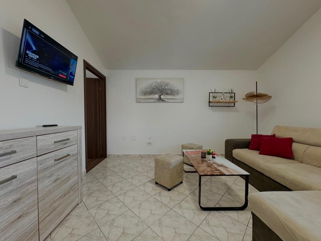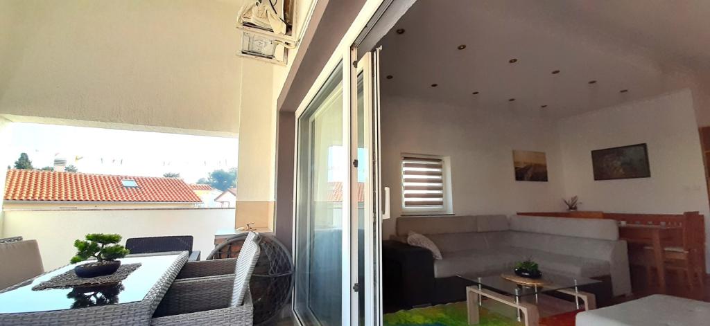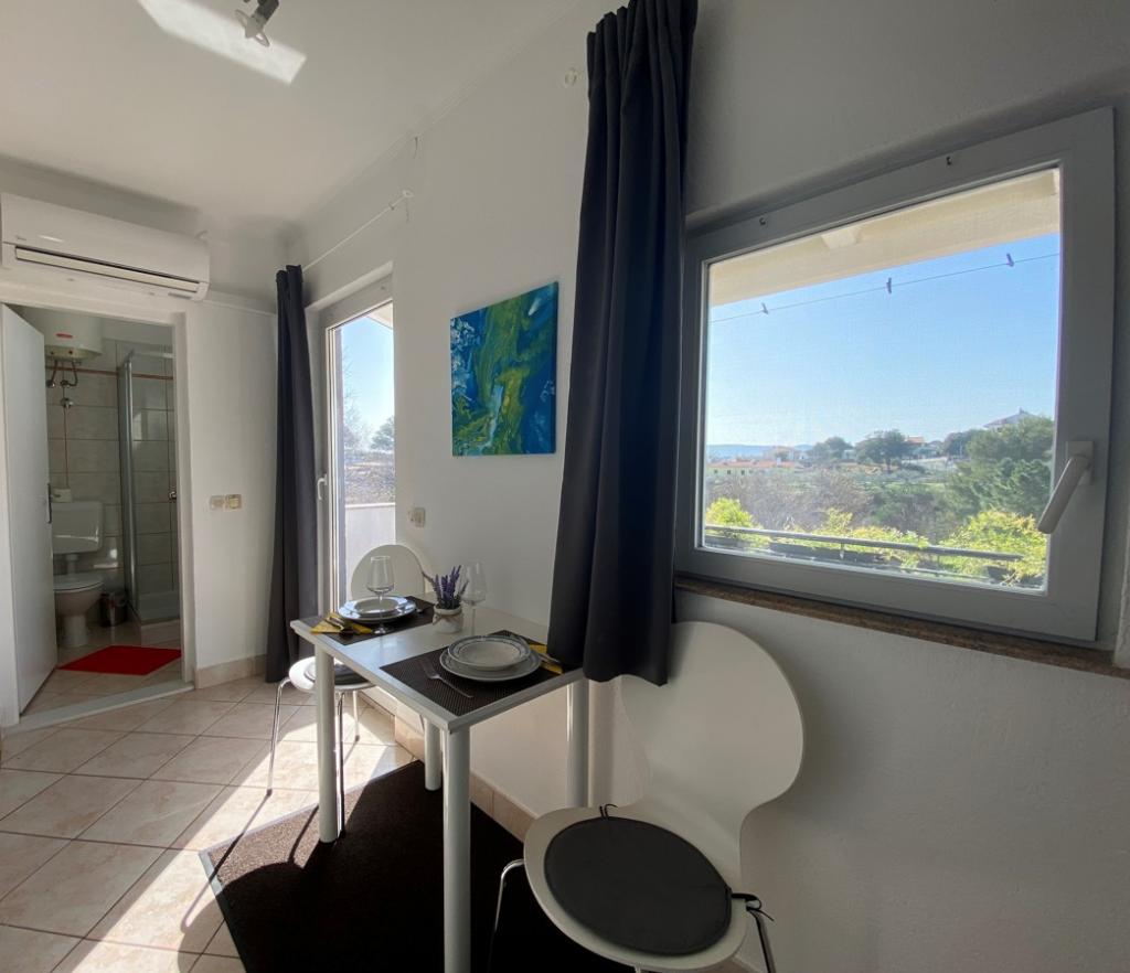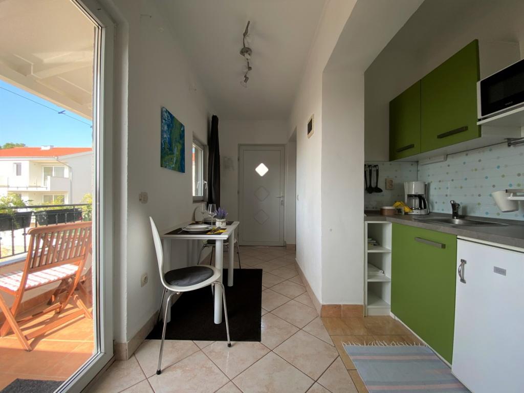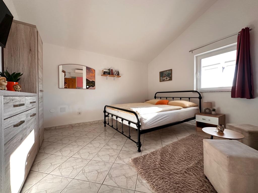 Kuća se nalazi na vrlo atraktivnoj lokaciji, u mirnom susjedstvu, nekoliko minuta hoda od plaže i desetak minuta hoda do centra grada. Objekt se sastoji od 5 apartmana: - Tri studio-apartmana za 2 osobe - jedan apartman za do 3 osobe - apartman od 75 kvadratnih metara za do 5 osob. Svaki apartman ima opremljenu kuhinju, balkon ili terasu, privatni ulaz i osigurano parkirno mjesto u sklopu objekta. Gostima je na raspolaganju zajednički vrt s plinskim roštiljom.