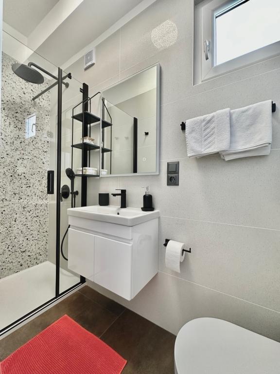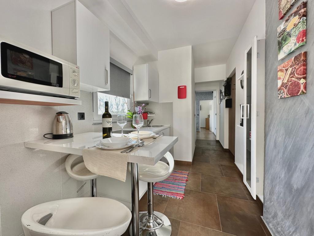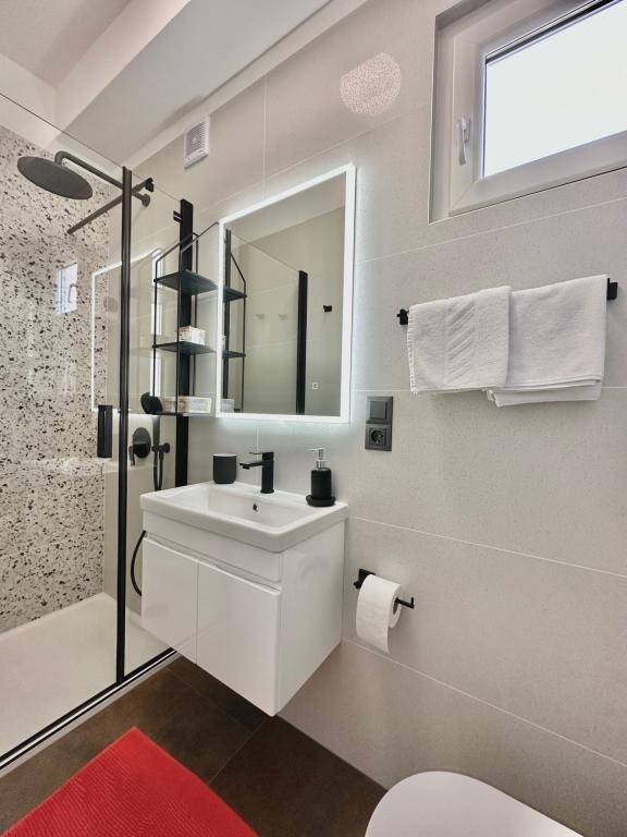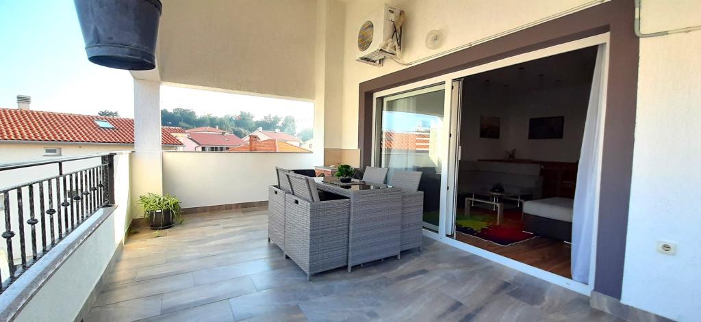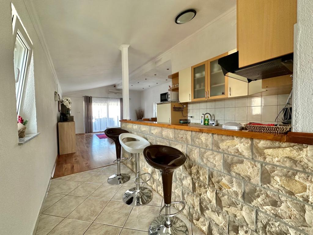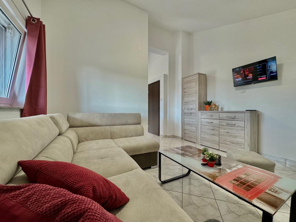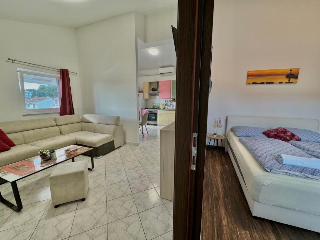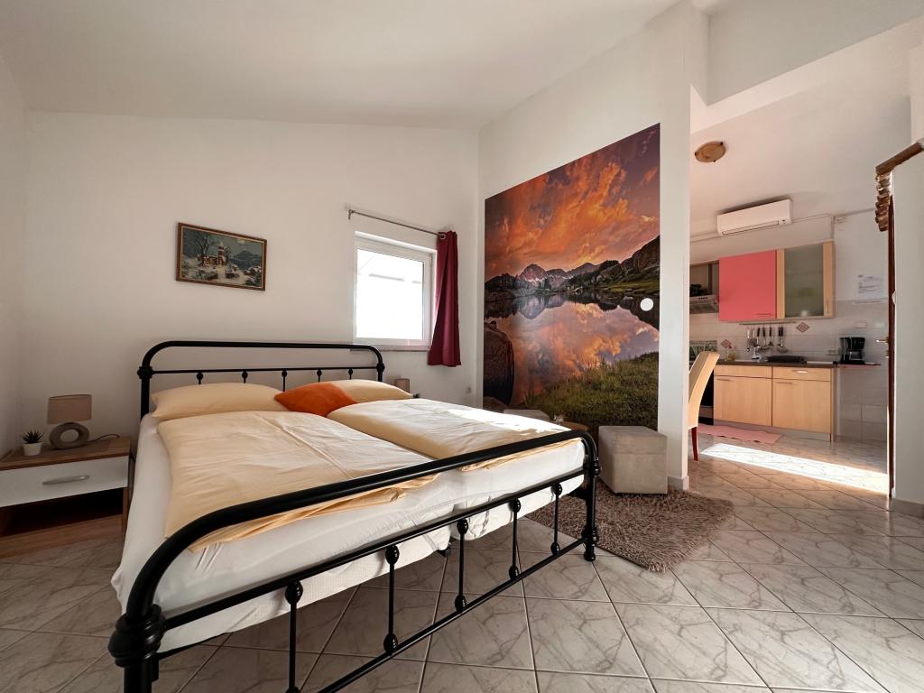 Kuća se nalazi na vrlo atraktivnoj lokaciji, u mirnom susjedstvu, nekoliko minuta hoda od plaže i desetak minuta hoda do centra grada. Objekt se sastoji od 5 apartmana: - Tri studio-apartmana za 2 osobe - jedan apartman za do 3 osobe - apartman od 75 kvadratnih metara za do 5 osob. Svaki apartman ima opremljenu kuhinju, balkon ili terasu, privatni ulaz i osigurano parkirno mjesto u sklopu objekta. Gostima je na raspolaganju zajednički vrt s plinskim roštiljom.