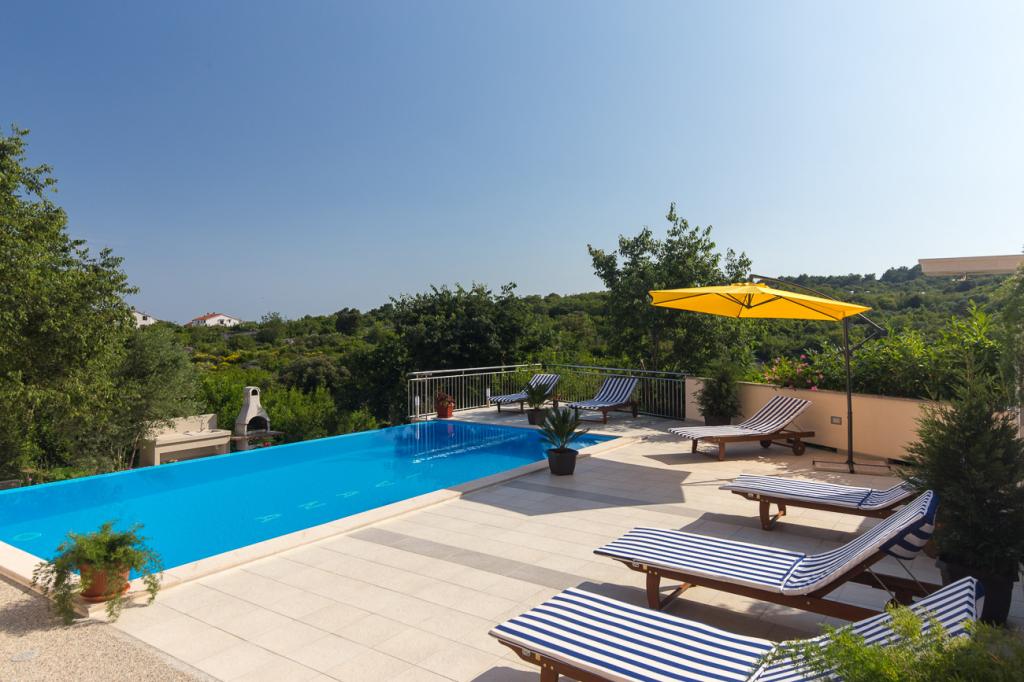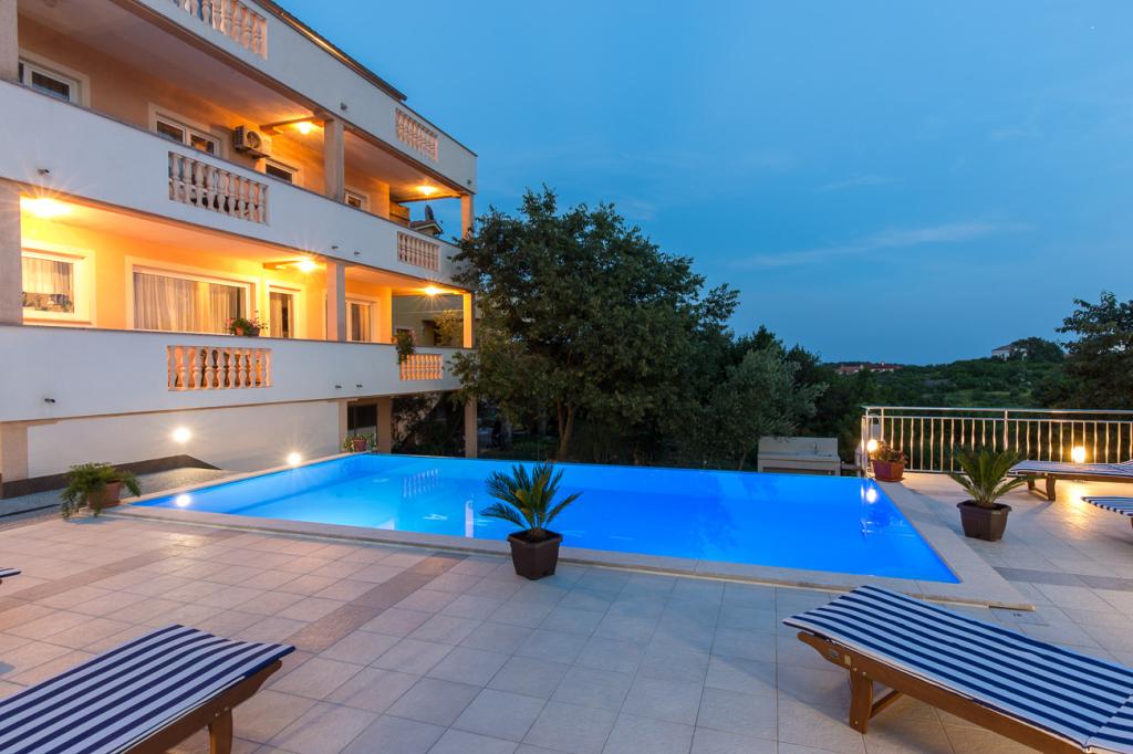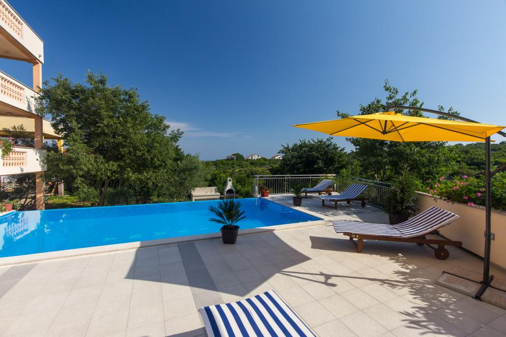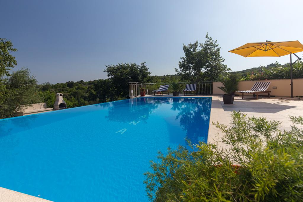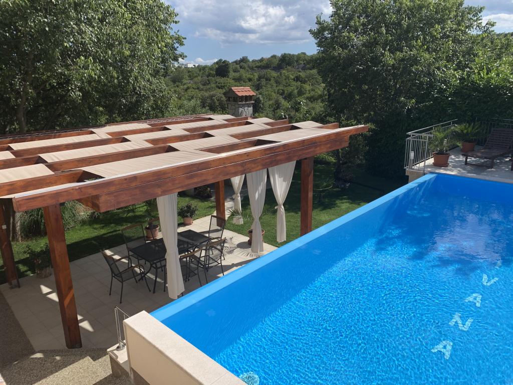 Ova prekrasna apartmanska kuća nudi savršen spoj udobnosti, privatnosti i opuštanja. U prostranom dvorištu nalazi se bazen idealan za uživanje tijekom toplih ljetnih dana, kao i uređeni vrt sa roštiljem, savršena za obiteljska okupljanja i večernja druženja s prijateljima. Kuća je moderno uređena i raspolaže sa 4 apartmana i jednim studio-apartmanom, Apartmani su funkcionalno opremljeni, s prostranim dnevnim boravkom, udobnim spavaćim sobama i potpuno opremljenim kuhinjom. Mirna lokacija i ograđeno dvorište osiguravaju potpunu privatnost, čineći ovu kuću idealnim mjestom za odmor, stanovanje ili turistički najam. Spoj prirode, komfora i luksuza – savršeno mjesto za bijeg od svakodnevice.