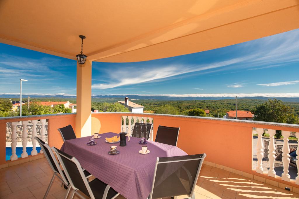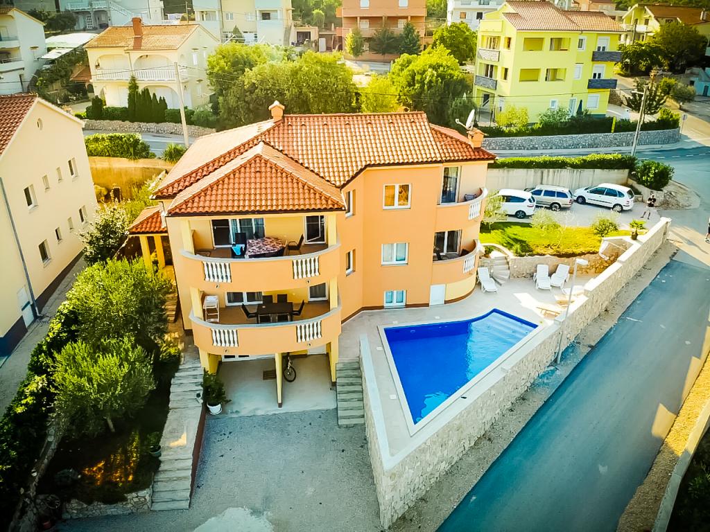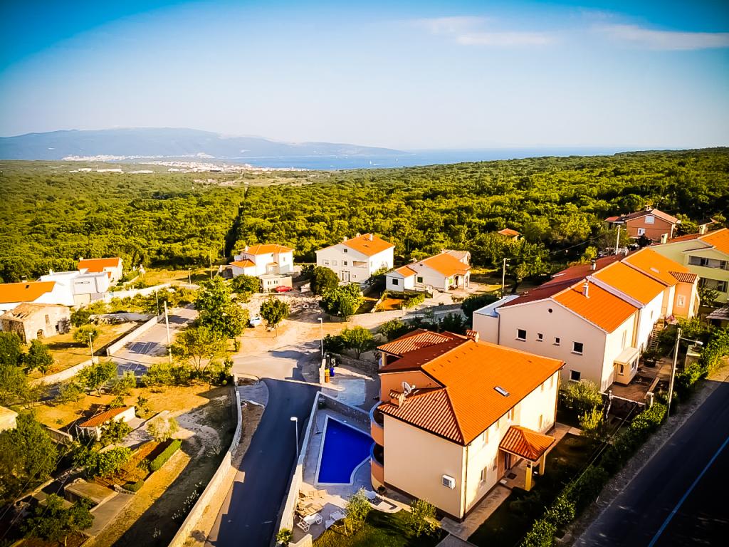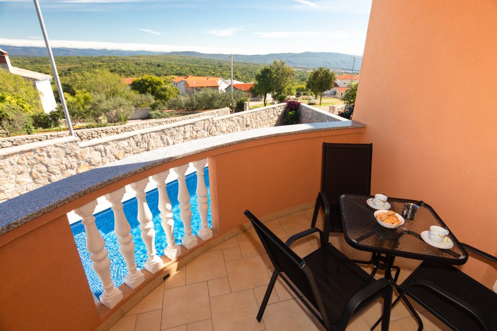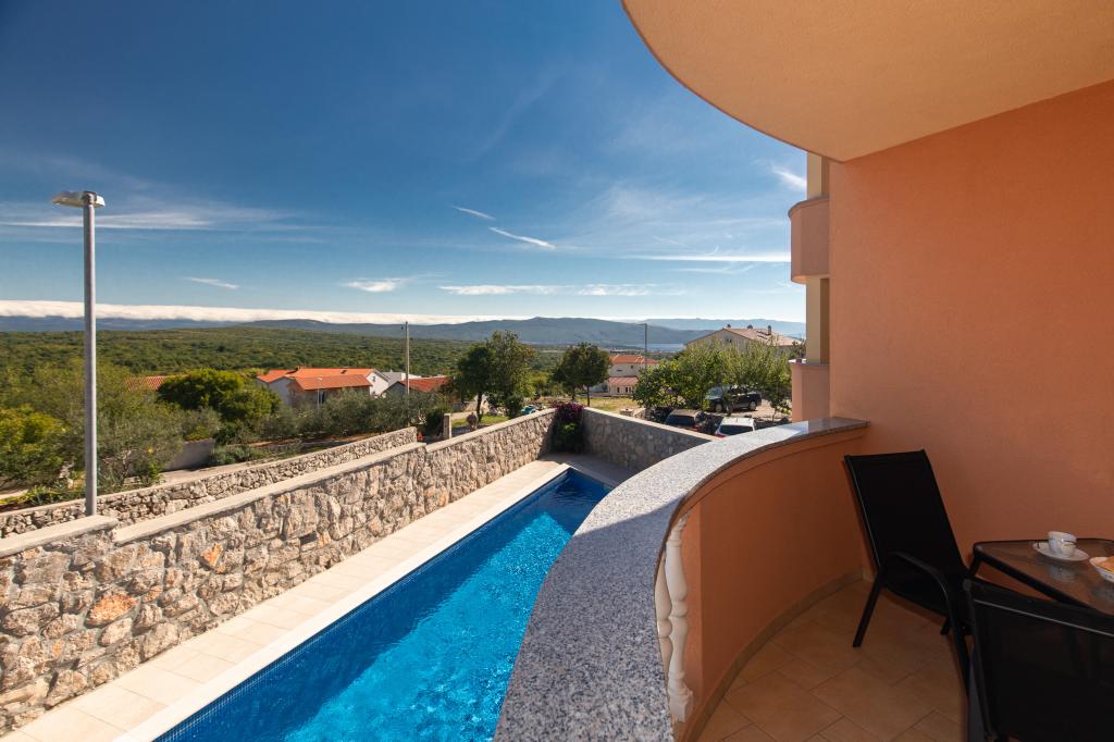 Naselje Salatić udaljeno je otprilike 3 km od grada Krka, na nekih 140 m nadmorske visine uz ugodnu blagu klimu i sviježi zrak. Sa njega proteže predivan pogled od Učke, preko Velebita sve do predivnog plavog mora i kvarnerskog arhipelaga (Golog otoka, Grgura, Cresa...) Apartmani se sastoje od jedne (A2 2) odnosno dvije (A4 2) dvokrevetne sobe, kuhinje, blagovaone, dnevnog boravka, kupaone i balkona. ) Balkoni sa kojeg se pruža već spomenuti predivan pogled, savršeno su mjesto za druženje uz večeru ili za miran popodnevni odmor. Opremljeni je sa svim potrebnim uređajima koji će Vaš boravak u njemu učiniti još ugodnijim i ljepšim. U ponudi imamo i veliki bazen sa slanom vodom, savršeno mjesto za odmor, zabavu i izbjegavanje gužvi na plažama. Apartmani su udaljeni samo 5 minuta vožnje automobilom od centra grada Krka (3, 5 km) te mnogih gradskih plaža. Naselje je vrlo dobro prometno povezano što će vam uvelike pomoći u istraživanju ruralnih djelova otoka