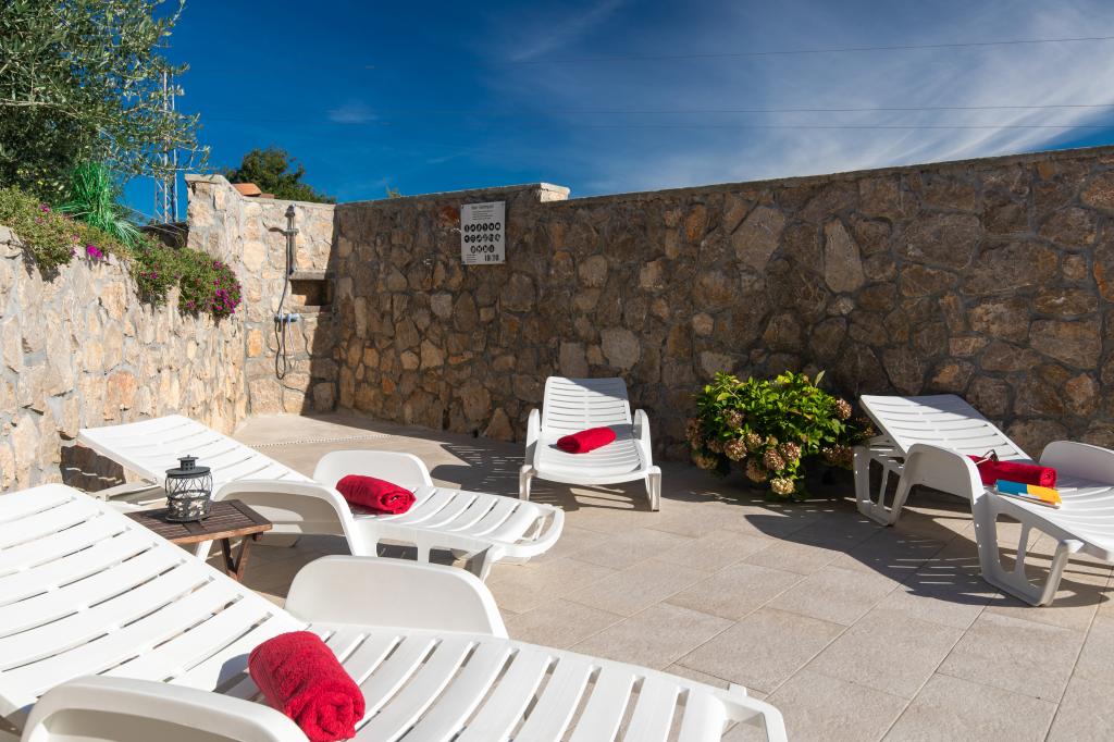 Od ove godine (2021) u ponudu apartmana smo uključili i korištenje privatnog sunčališta pored mora. Teren od 2200m2 ima prilaz za automobile, osiguran parking u hladovini, uređeno sunčalište te prilaz moru. U vlasništvu je moje obitelj a u ponudi je isključivo za korisnike naših apartmana (9 smještajnih jedinica). Nalazi se na zapadnoj strani otoka, 10 km od apartmana, u blizini sela Pinezići. Nedaleko sunčališta nalazi se i ugostiteljski objekt sa hranom i pićem. Kao što sam rekao ovo je prva godina da imamo navedeno u ponudi i sigurni smo da će naši gosti uživati u predivnoj plaži bez uobičajene gužve. U cijenu apartmana uključeno je korištenje bazena, wifi, klima uređaj, sat. TV sa preko 60 tv programa, parking... Posteljina i završno čišćenje apartmana uključeni su u cijenu. Rado ćemo našim gostima pružiti bilo kakve dodatne informacije te ih uputiti na sve zanimljivosti koje pruža naš otok kao i na sve važne događaje koji se tijekom ljeta odvijaju na otoku Krku.