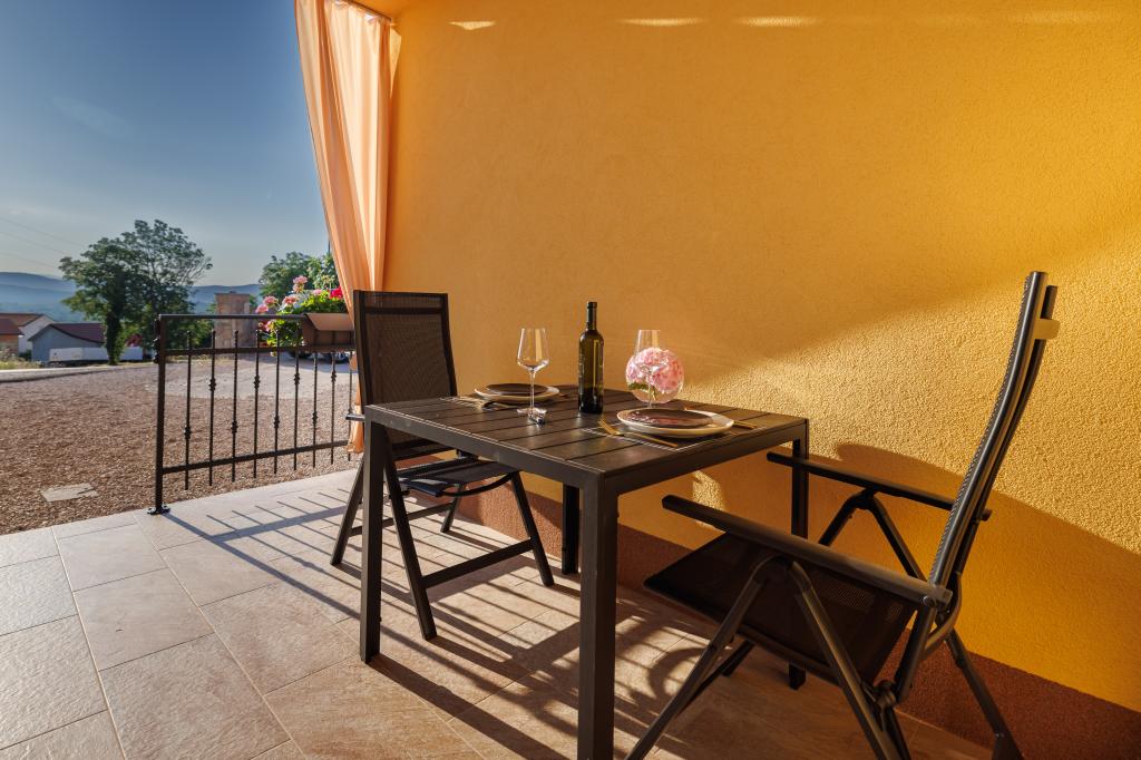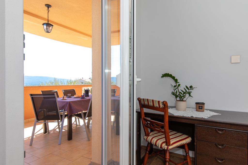 Vrlo prijateljski dobrodošlicu, vlasnik objekta živi u istoj kući i uvijek smo bili tu za nas. Stan je potpuno nov, lijepo opremljen, klima, TV, besplatni WiFi, lijepi balkon s pogledom na grad Krk i more, veliku spavaću sobu i vrlo prostranom kuhinjom, privatni parking za goste. More je oko 3 km, tako da je ovaj apartman je idealan za auto i moto turista. Preporuča!