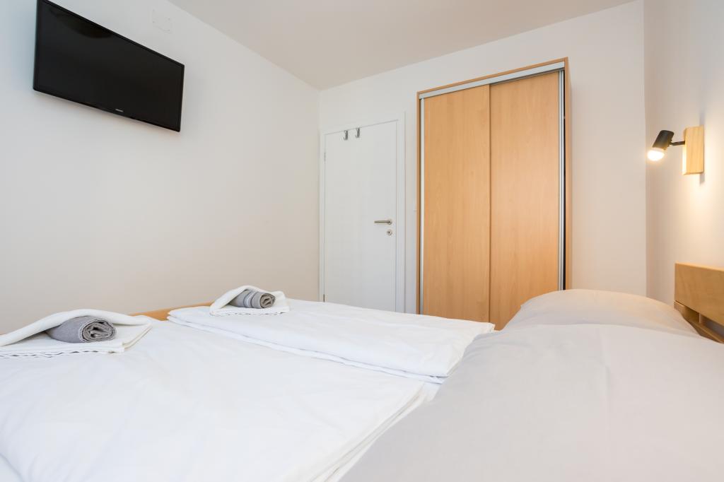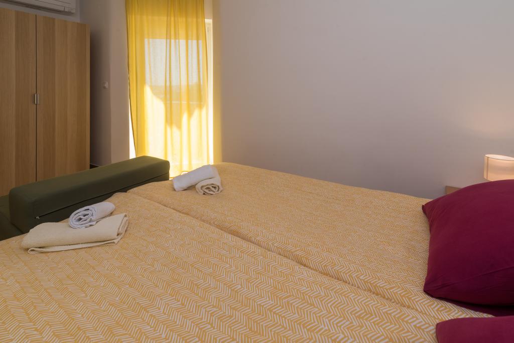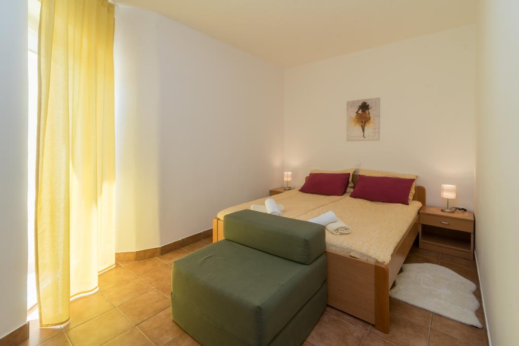 Pročitaj više Smještajne jediniceUključeno u cijenu: Najam apartmana i korištenje svih uređaja, potrošnja struje, potrošnja vode, klima uređaj, televizija, Wireless internet, završno čišćenje, tjedna zamjena sve posteljine(plahte, stolnjaci, ručnici, kuhinjske krpe), boravišna taksa, eko taksa. U svakom apartmanu je dostupan pomoćni ležaj uz nadoplatu od 12, 00 Eura/dan. Po potvrdi rezervacije potrebno je uplatiti akontaciju u iznosu od 20% ukupne cijene. Vrijeme ulaska u apartman je 14h i vrijeme odlaska je 10h.