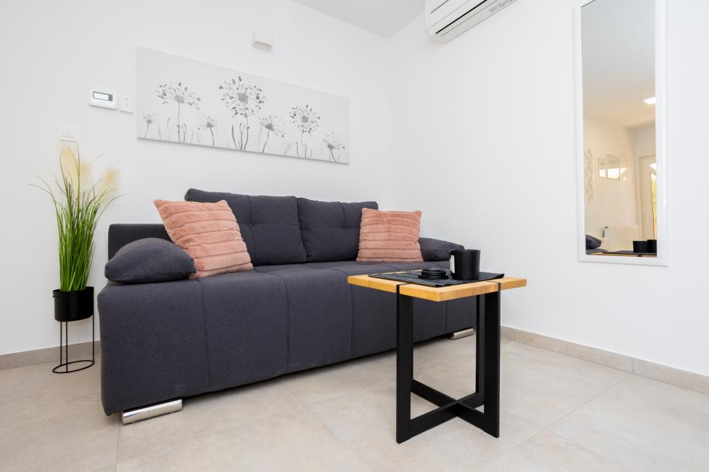 Boravili smo krajem veljače s troje djece, bilo nam je dovoljno mjesta, bračni krevet je jako velik + kauč na razvlačenje. Centralno grijanje super, cijelo vrijeme nam bilo lijepo toplo. Lijepi balkon i pogled, blizu šetnice uz more i dječji park. Domaćini dragi i ugodni. Sve pohvale, bez zamjerki.
