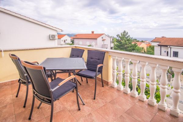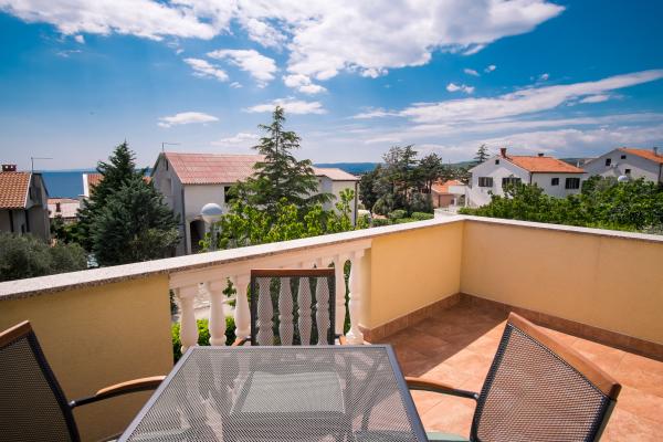Veliki, prekrasno opremljeni apartman u mirnom dijelu Krka. Odličan veliki krevet, terasa s pogledom na more, veliki Tv ,pogodno za kućne ljubimce...