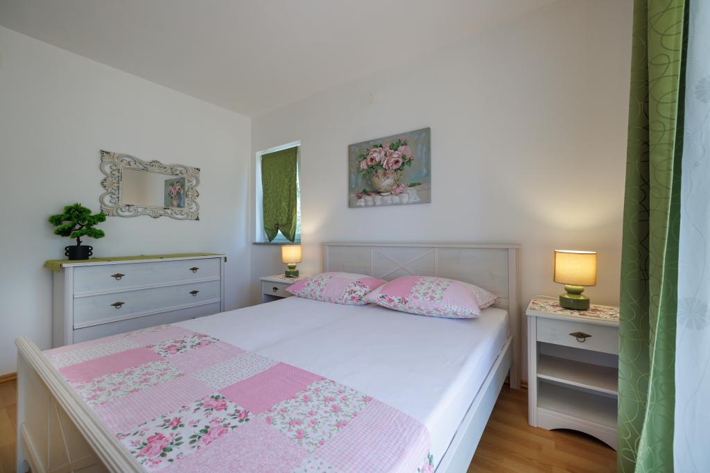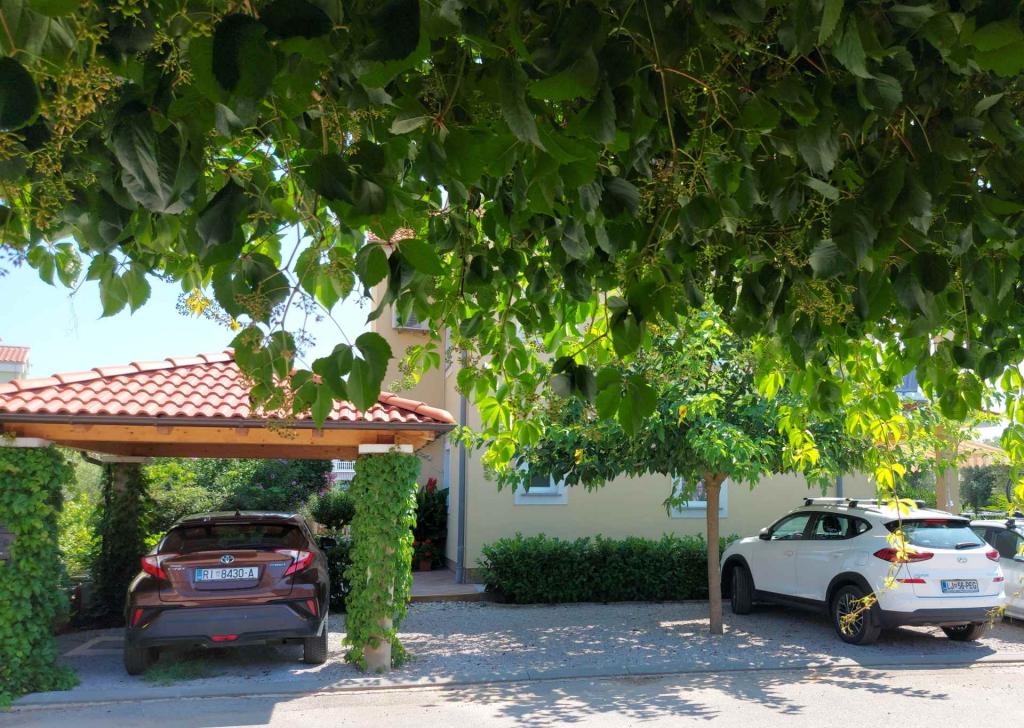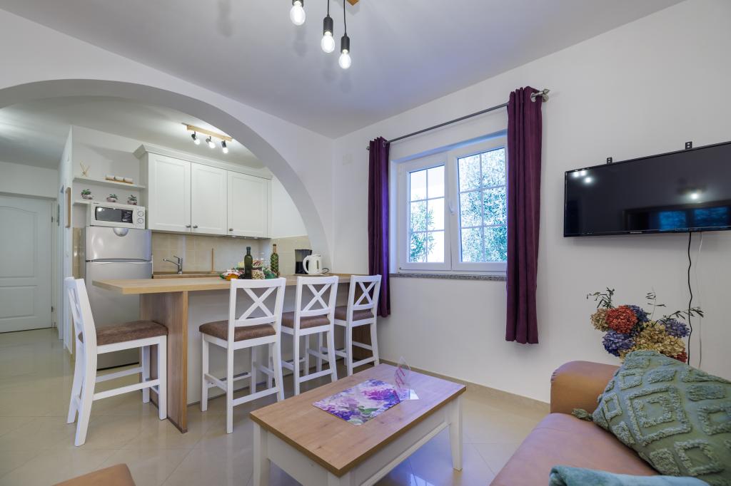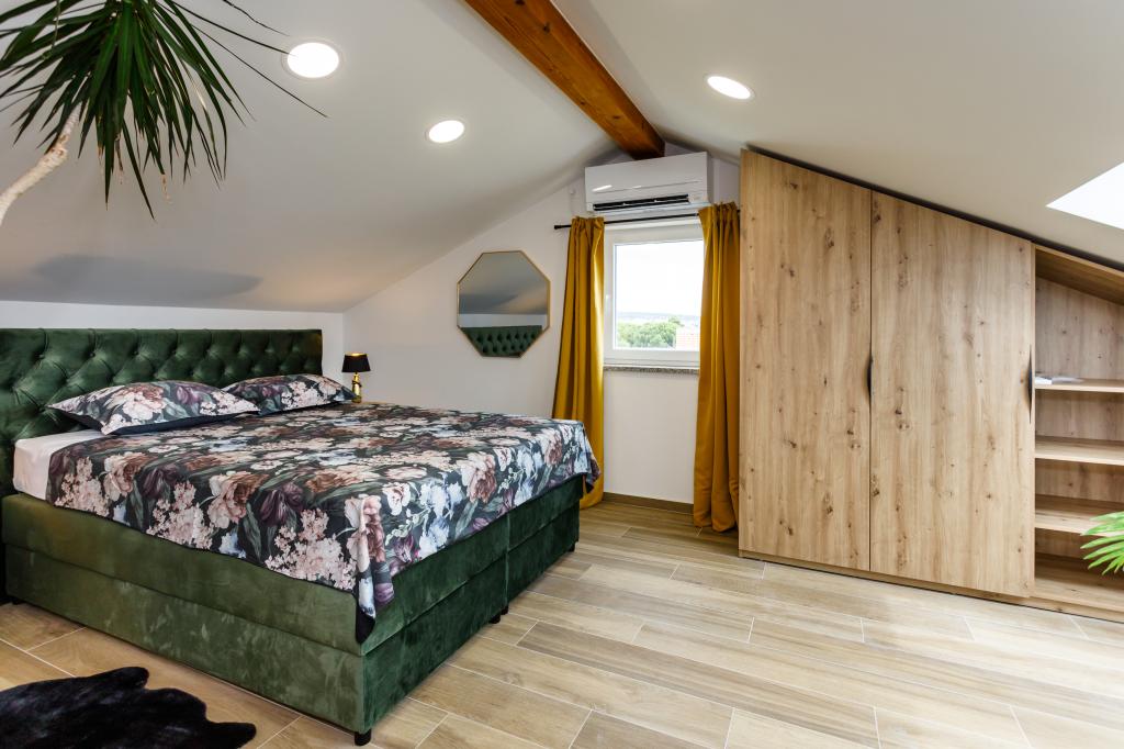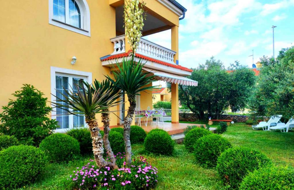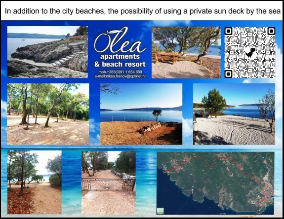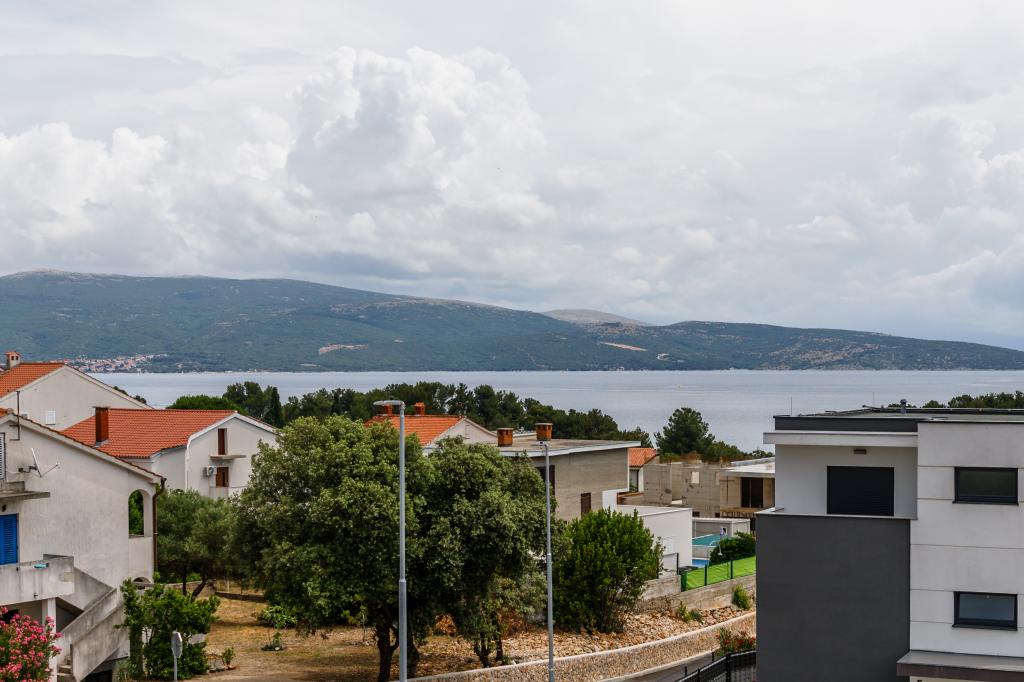 Novi moderni apartmani na mirnoj i atraktivnoj lokaciji Krka sa pogledom na more. Kuća se nalazi 300 metara do plaže i 700 metara do centra. Objekt ima vlastiti parking i vrt. Apartmani su moderno opremljeni i ugodni za boravak.