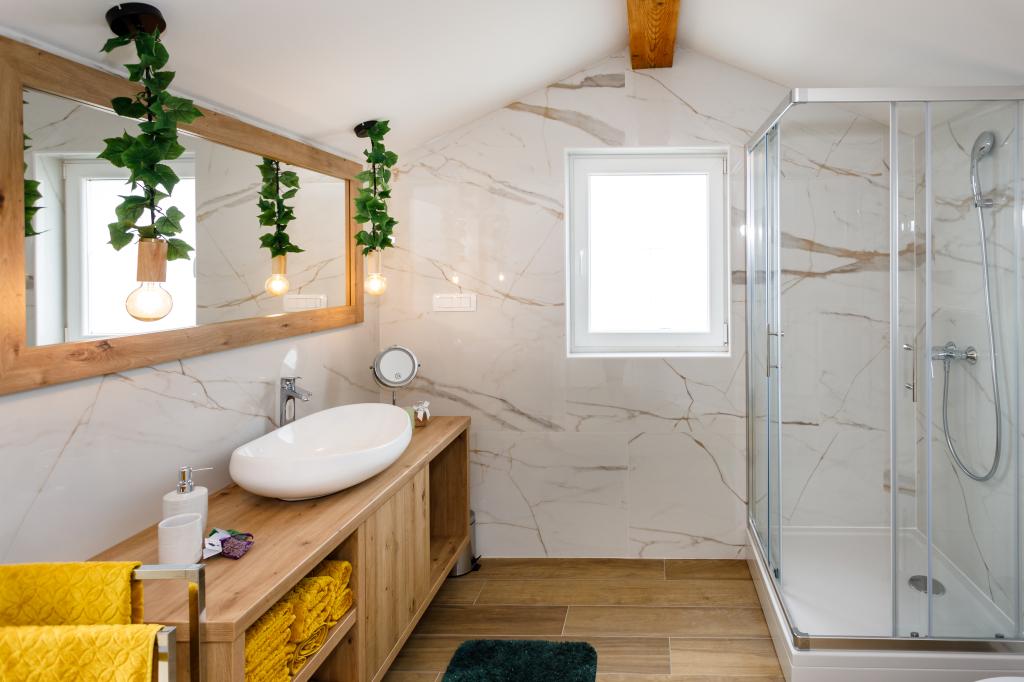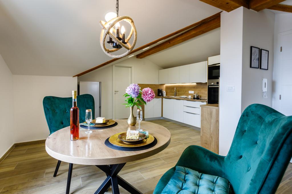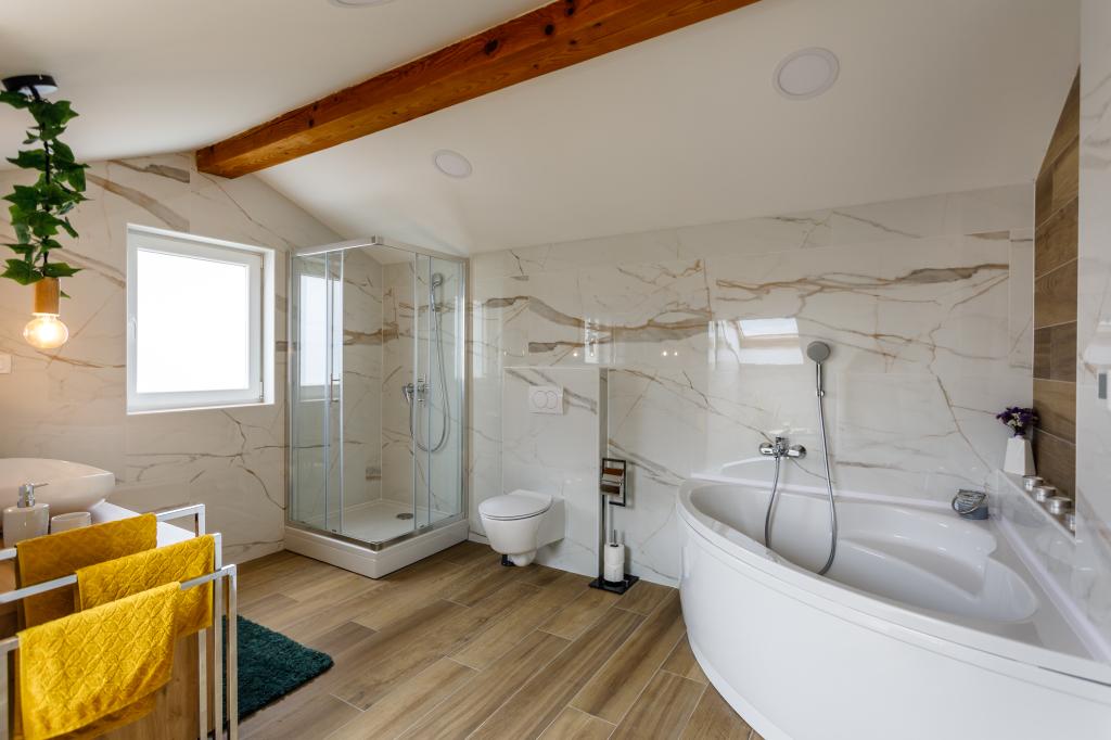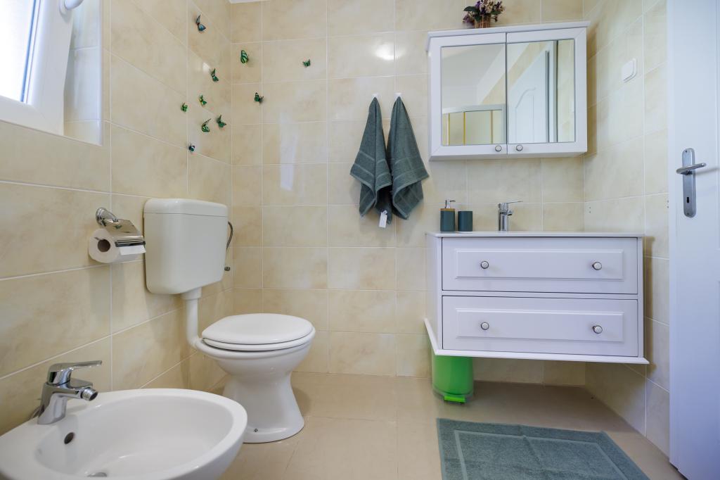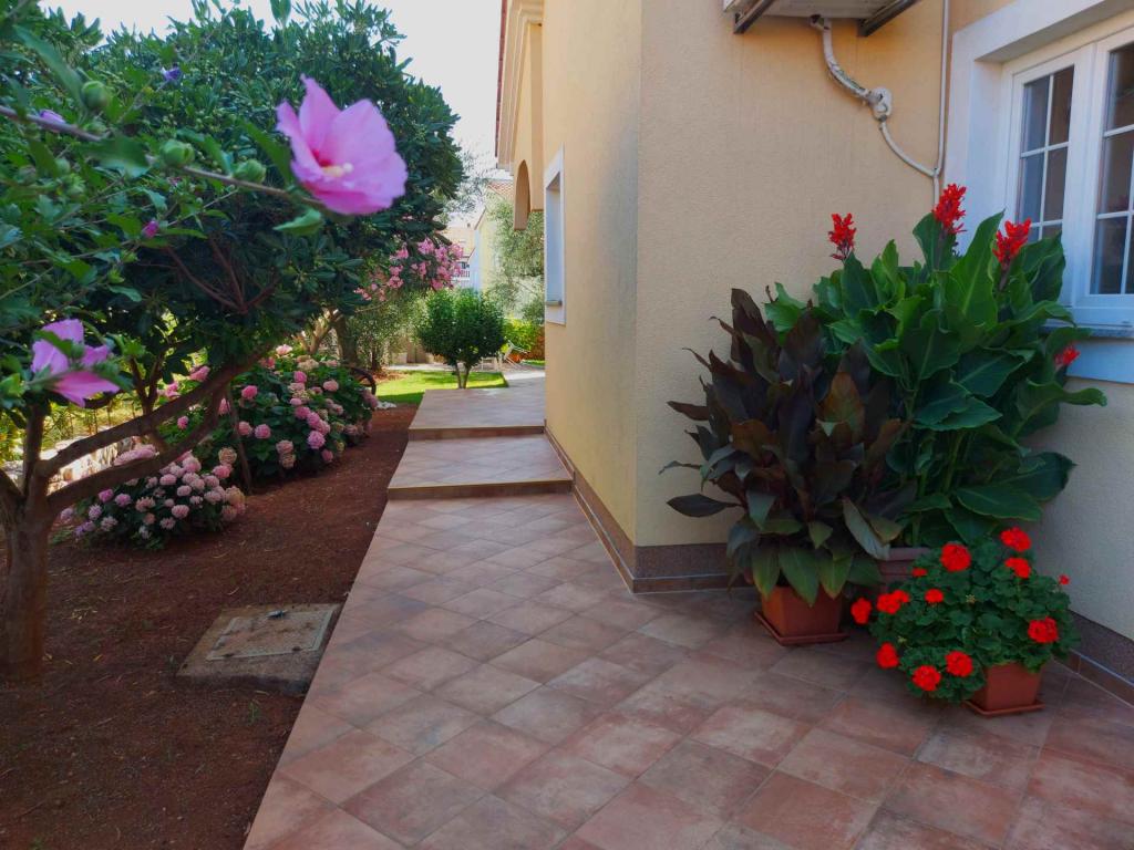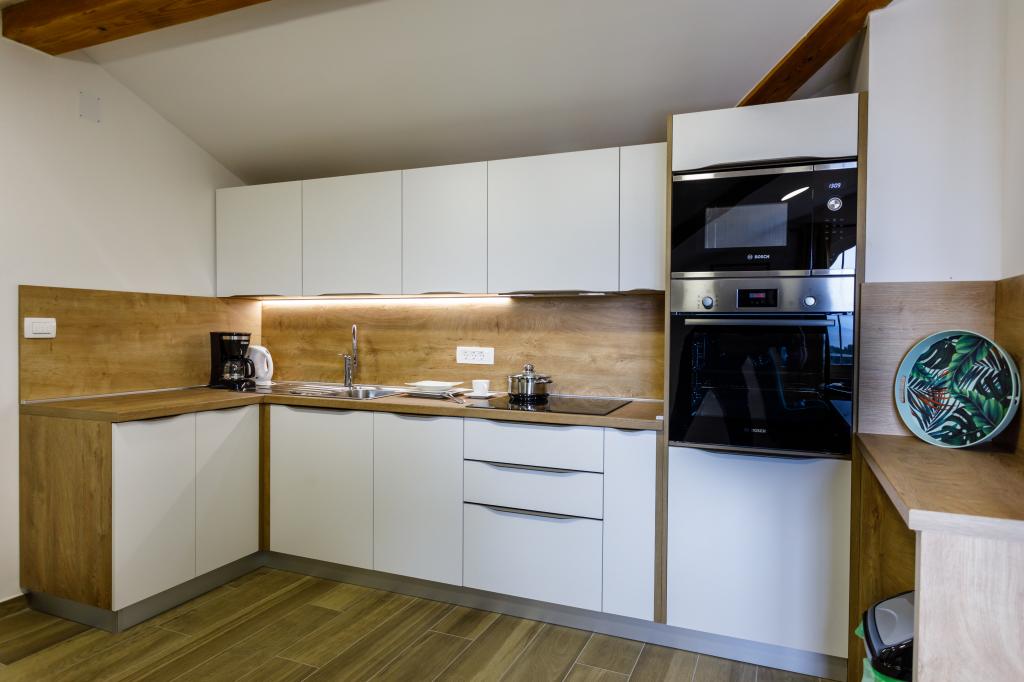 Novi moderni apartmani na mirnoj i atraktivnoj lokaciji Krka sa pogledom na more. Kuća se nalazi 300 metara do plaže i 700 metara do centra. Objekt ima vlastiti parking i vrt. Apartmani su moderno opremljeni i ugodni za boravak.