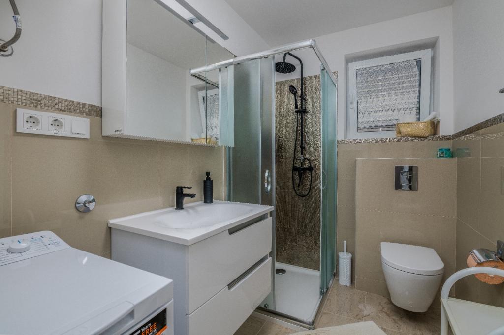 Apartmani Nada nalaze se na atraktivnoj lokaciji u gradu Krku, samo 100 metara od mora i 10 minuta hoda do centra grada. Apartmani imaju pogled na more, okruženi su zelenilom i prostranim dvorištem. Iznajmljujemo 3 jedinice. Apartman 1 kategoriziran s 4 zvjezdice, površine 55 m2, sastoji se od dvije odvojene spavaće sobe svaka sa balkonom i kupaonom s wc-om i tuš kadom, kreveti 160x200, odvojena kuhinja s boravkom. Apartmani 2 i 3 su kategorije 3 zvjezdice, površine 46 m2 imaju jednu odvojenu spavaću sobu krevet 160x200 i veći boravak sa krevetom 160x200. Svi apartmani su moderno uređeni i imaju perilicu veša, mašinu za suđe, led tv , pečnicu, mikrovalnu, toster, Nespresso aparat.... Sve prostorije u apartmanu su klimatizirane. Popularne plaže Dražica i Punta Di Galetto nalaze se u blizini apartmana. Povijesne znamenitosti udaljene su 500 metara od apartmana, npr. Krčka tvrđava. Najbliža zračna luka je Zračna luka Rijeka, 25 km od objekta.
