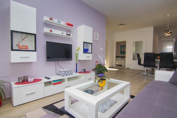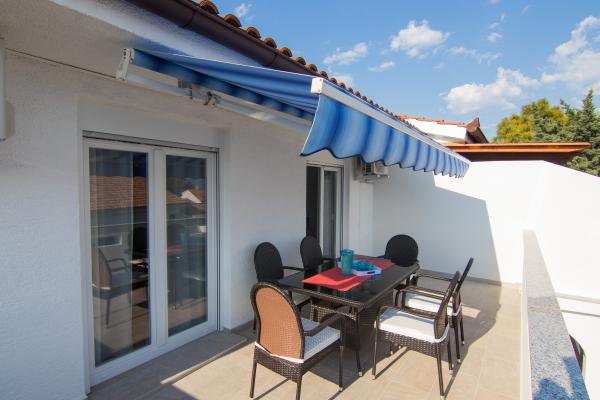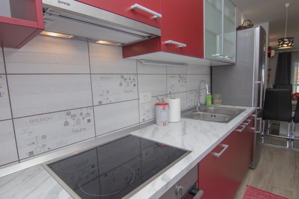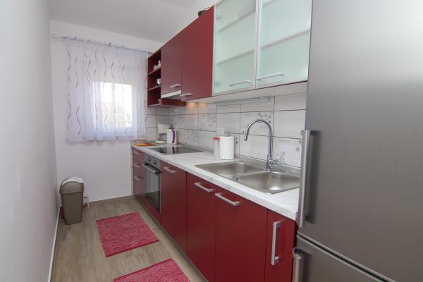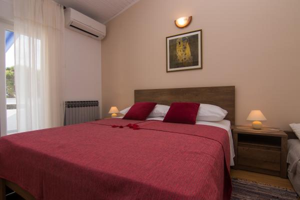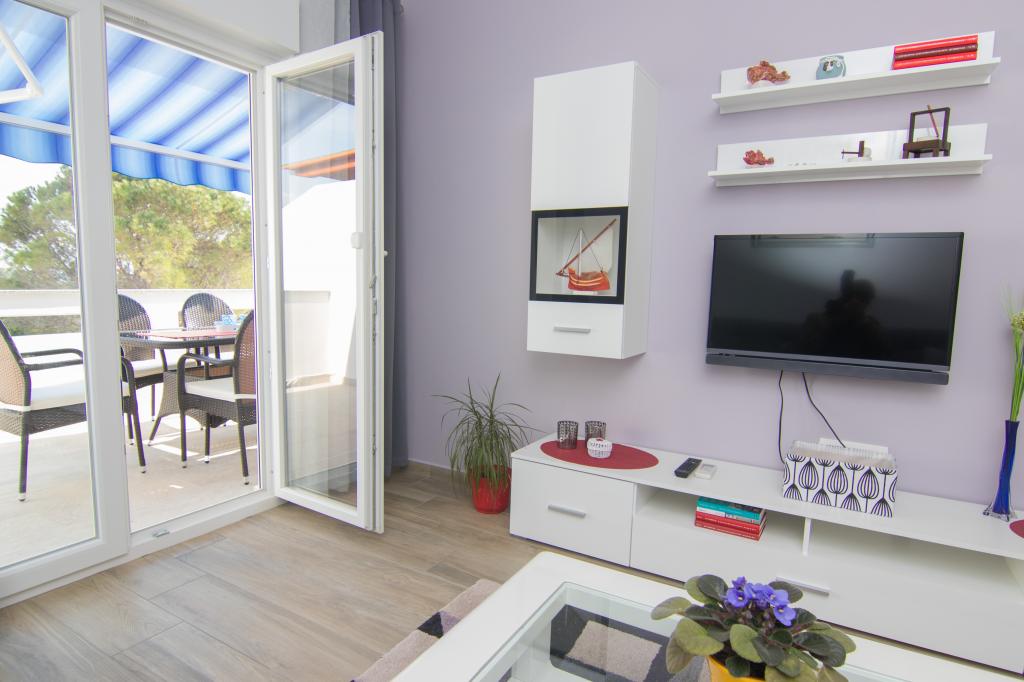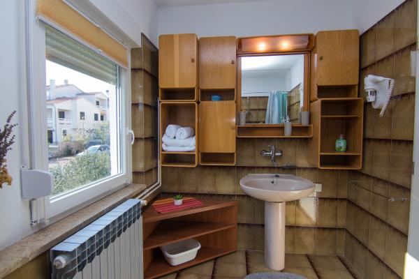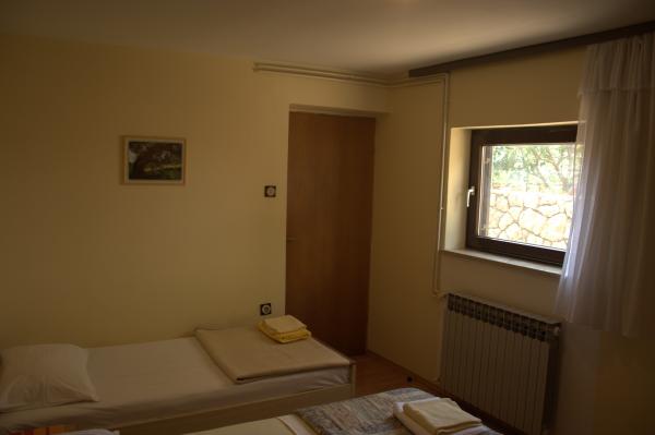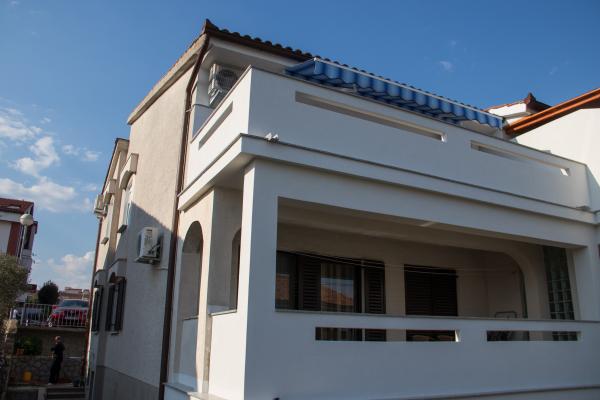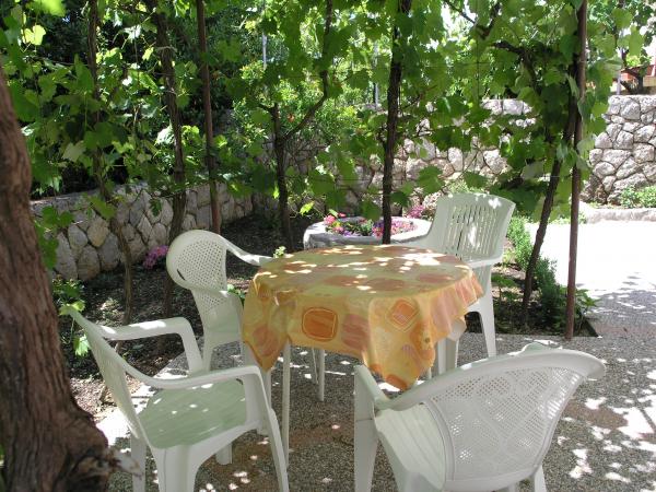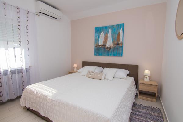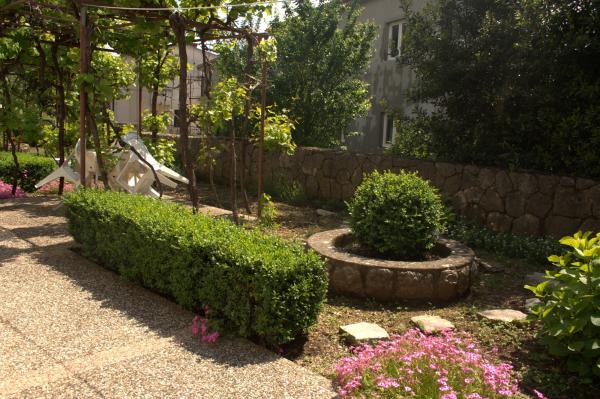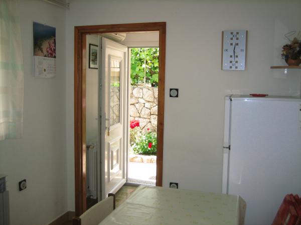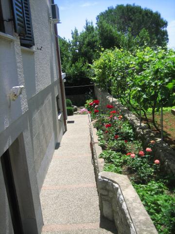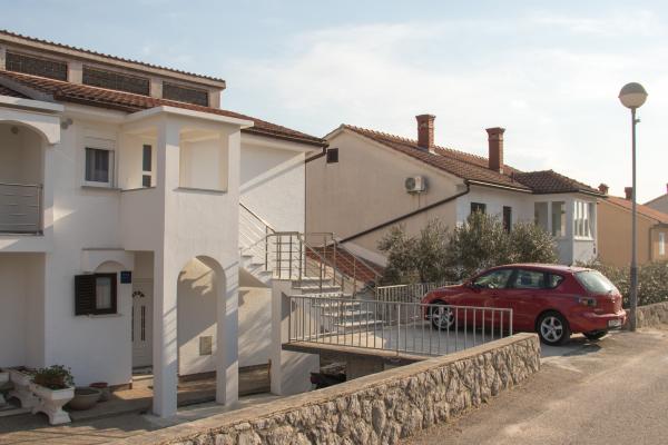 Kuća se nalazi u mirnom dijelu grada Krka, udaljena od mora i plaže svega 100 metara, uz koju je borova šumica, restoran, pivnica i kafe bar. Do centra grada je oko 6 minuta hoda. Apartman A/ 2 nalazi se uz vrt gdje je terasa natkrivena zelenilom. Apartman A/ 4 smješten je na 1. katu, ima 2 sobe, terasu sa tendom, kupaonicu, dnevni boravak i kuhinju. Apartman A/4 je potpuno novo uređen i opremljen: svaka soba i dnevni boravak imaju klimu, velika terasa sa stolom i stolicama, TV, kuhinja opremljena svim aparatima: štednjak na struju, pećnica, hladnjak sa ledenicom, perilica suđa i perilica rublja. Apartmani imaju centralno grijanje. Besplatan internet i vlastiti parking.