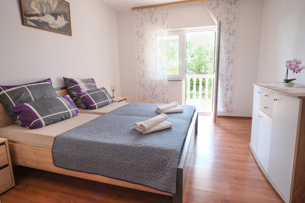 Dobro došli na ponudo Apartmani Ruža - Krk. Pozdravljaju Vas Ruža i Filip. Nudimo dva opremena apartmana u Gradu Krku, blizu staroga grada i mora. Apartman 1 se sastoji od dvije spavaće sobe, primaća soba, kupaona, kuhinja i velika terasa. Kauč u primaćoj sobi se izvlači tako da na njemu mogu spavati dvoje djece (velikičine djece u osnovnoj školi). Apartman 2 se sastoji od jedne spavaće sobe, primaća soba, kupaona, kuhinja i velike terasa. Kauč u primaćoj sobi se izvlači tako da na njemu mogu spavati dvoje djece (velikičine djece u osnovnoj školi). Za oba apartmana su osigurano parkingi za osobna automobila uz kuću. Objekti se nalazi ca. 7 minuta hoda do mora / plaža Ježevac i Porporela. Te 10 Minuta do starog grada Krka (centar) sa restornaima, placom, rivom, ljekarnom, bankama i.t.d.