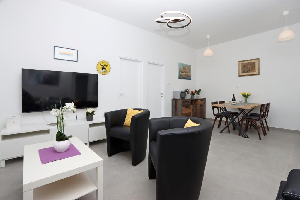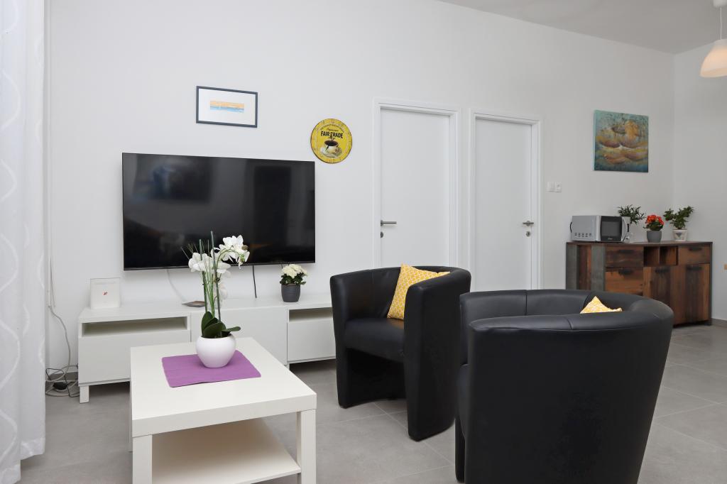 Stan je odličan, imali smo sve, pa čak i više što smo htjeli. Lokacija je savršena - blizu plaže, marine i starog grada. Štoviše, sam grad je najbolja opcija za dulje ljetovanje na Krku - to je u središtu otoka, tako da možete posjetiti svaki grad u roku od 30-40 min. Apartmani su čisti i potpuno namješteni, klima uređaj radi dobro. Stvarno nam se svidjela terasa uz stan, jer tijekom cijelog dana nije na sunčanom mjestu - puno smo se opustili, večerali i doručkovali. Savršen! Nemoguće je ne spomenuti nevjerojatnu obitelj Dujmović. Izuzetno ljubazni, topli i gostoljubivi ljudi. Nismo imali problema s komunikacijom. Sandra i njezina divna mama su od velike pomoći i učinili su naš boravak u Krku boljim nego što smo mislili. Stvarno vam preporučujemo ovaj apartman!