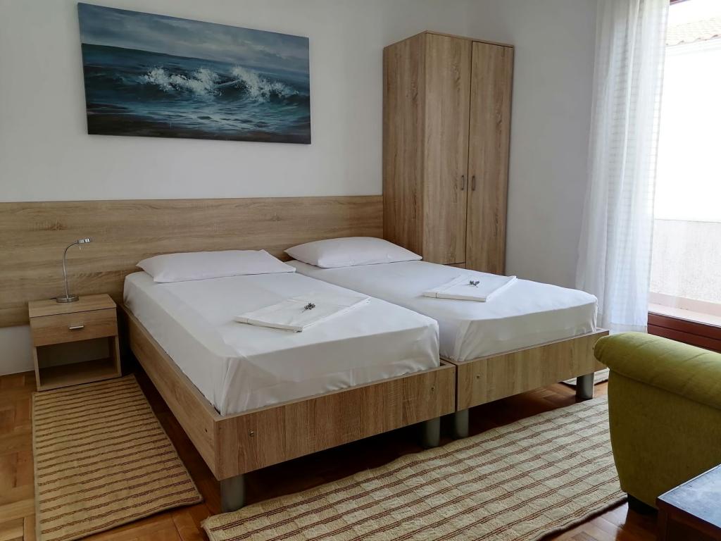 Pročitaj više Smještajne jediniceUpiti i rezervacije mogu se vršiti putem e-maila. Način plaćanja je gotovinom direktno vlasniku po dolasku u apartman, visina akontacije - prema upitu. U cijenu je uključena kompletna posteljina i završno čišćenje, boravišna taksa, te besplatna upotreba interneta. U cijenu nije uključena prijava (1, 5€) po osobi, klima uređaj - 0,6€/h (smart card), pomoćni krevet (9€) po osobi po danu. Vrijeme dolaska u apartman poslije 14h. Vrijeme odlaska iz apartmana do 10 h.