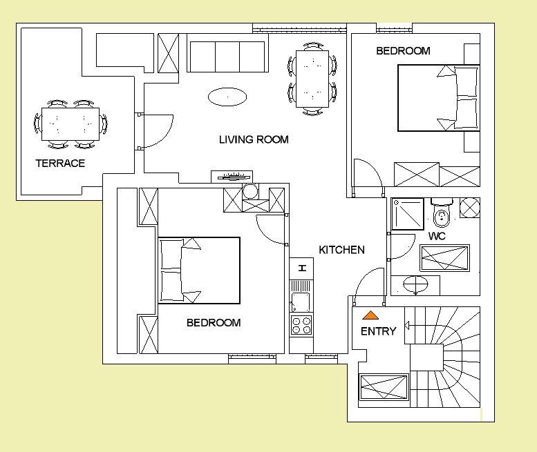 Kuća se nalazi 400 m od plaže i 800 m od centra grada Krka. Svaki apartman ima svoje parkirno mjesto. .