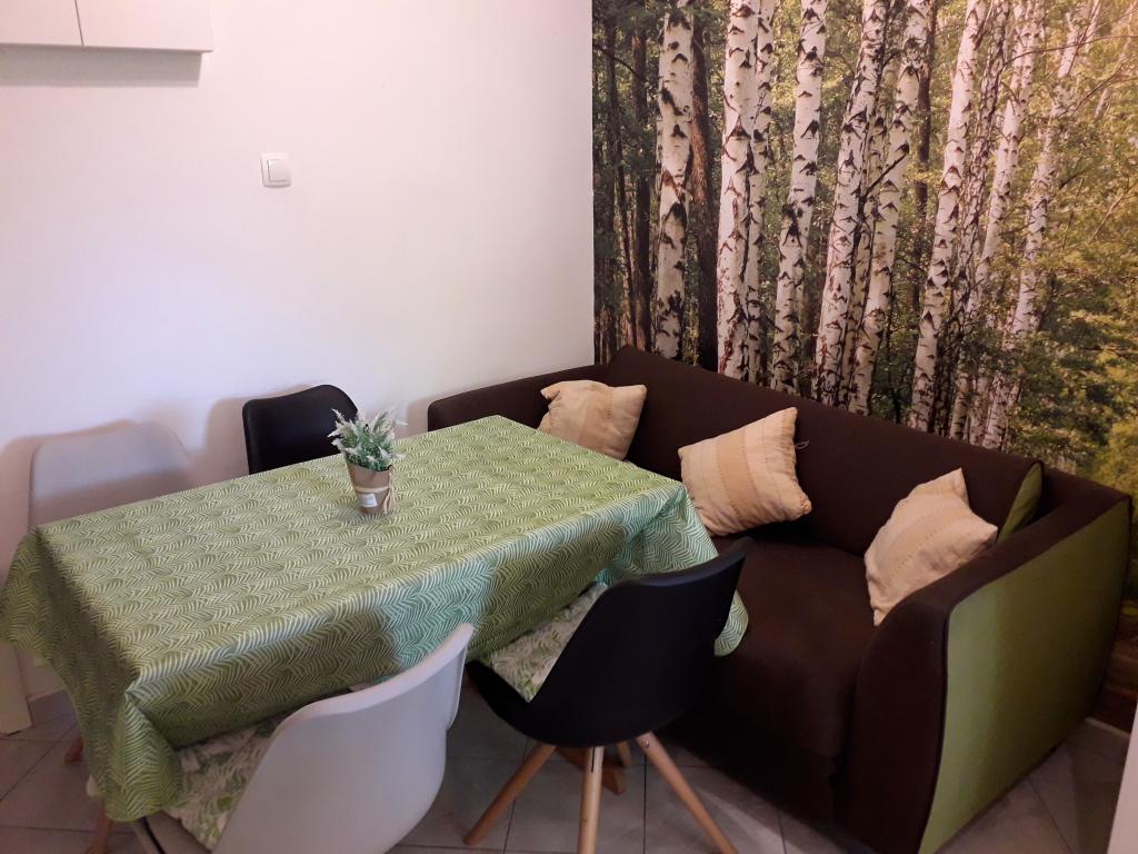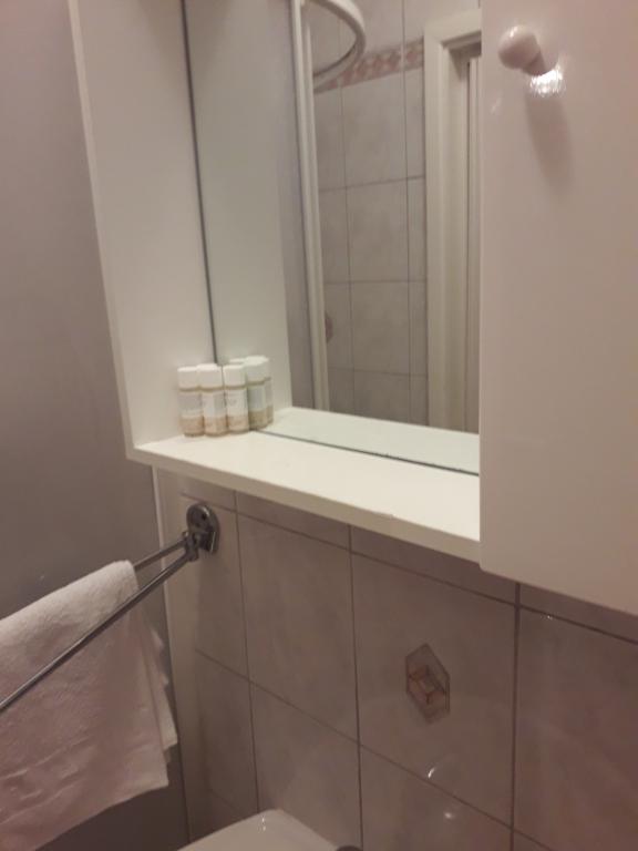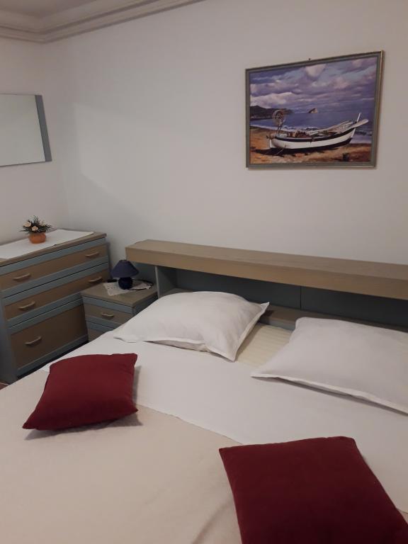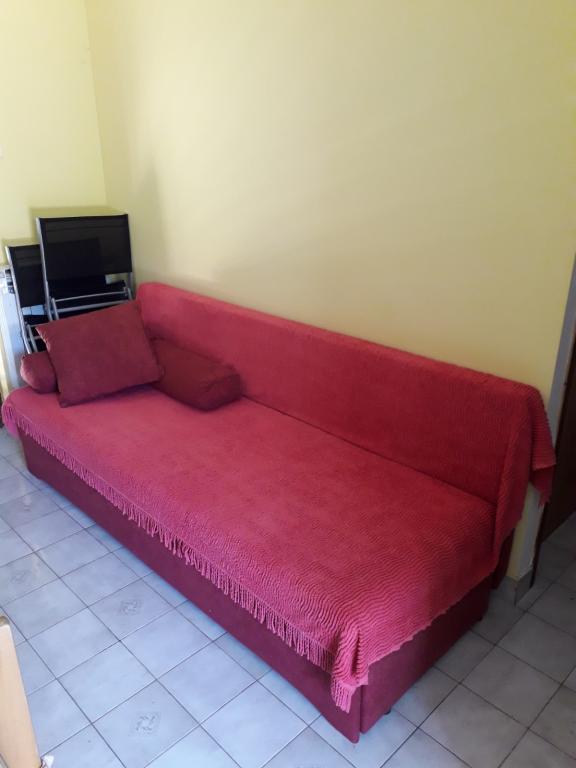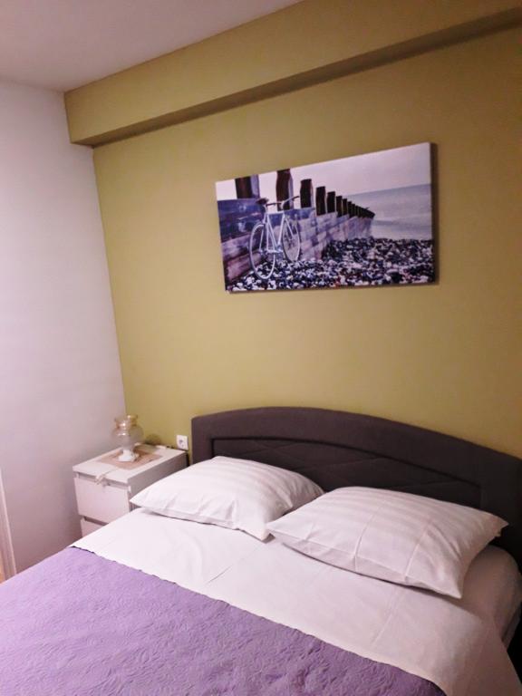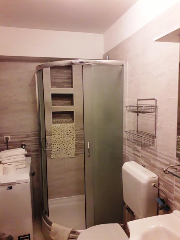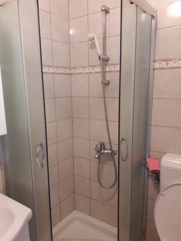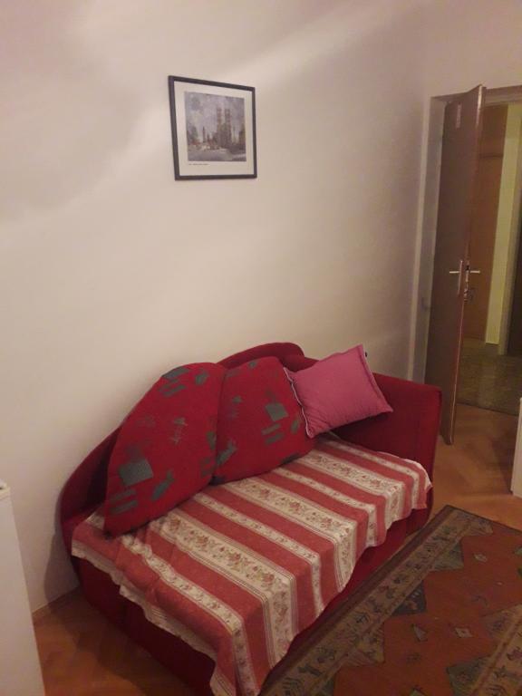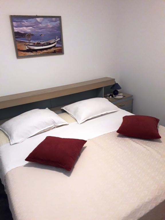 Soba sa vlastitom kupaonicom nalazi se na 1. katu kuće. Soba ima televizor, wifi, kupaonicu sa tuš kadom, hladnjak, bračni krevet pomoćni ležaj- prikladno za djecu, terasu sa garniturom za sjedenje, klima uređaj (doplata 5 €/dan)