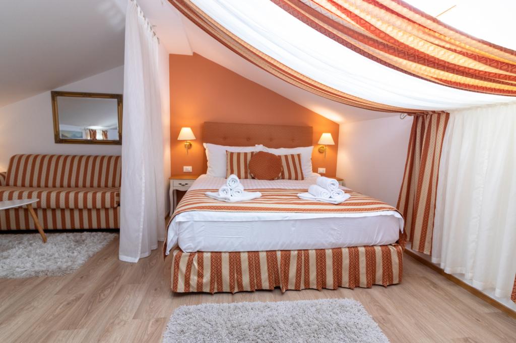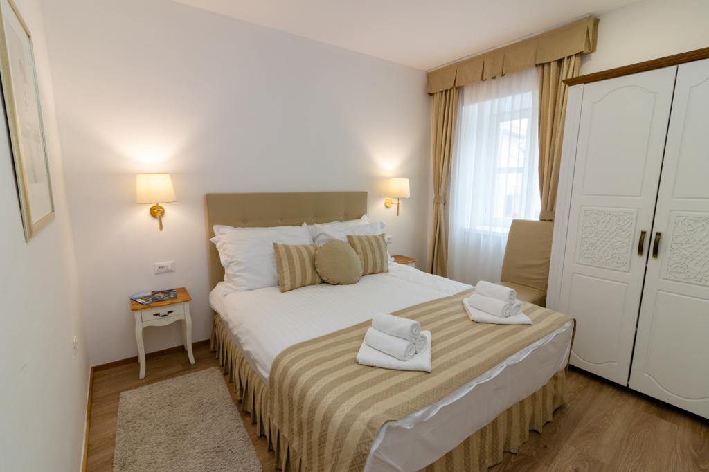 Luksuzne i suvremeno uređene sobe. Smješteni smo u samom centru grada Krka. Plaža se nalazi samo 5 minuta pješke od našeg objekta. Svi bitni sadržaji su na udaljenosti do 500 metara i nema potrebe za korištenjem automobila.