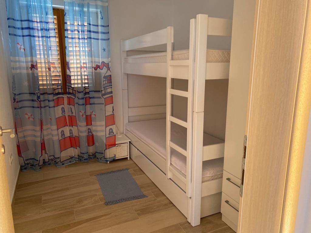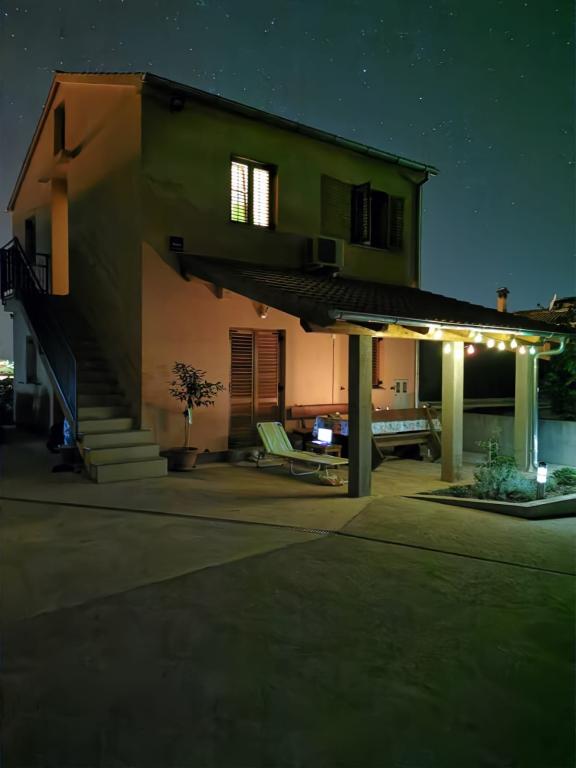 Apartman Anna na katu obiteljske kuće, sa pogledom na more i centara, u blizini borove šume, slijepa ulica. Kompletno opremljen, novo uređeni apartman. Blizina teniskih terena, košarkaškog i nogometnog igrališta. 2 minute hoda do plaže, 5 minuta do centra mjesta. Idealan za obitelj s djecom, mirno mjesto. Uređene pješćane, šljunčane i betonirane plaže, šetnica kroz borovu šumu.