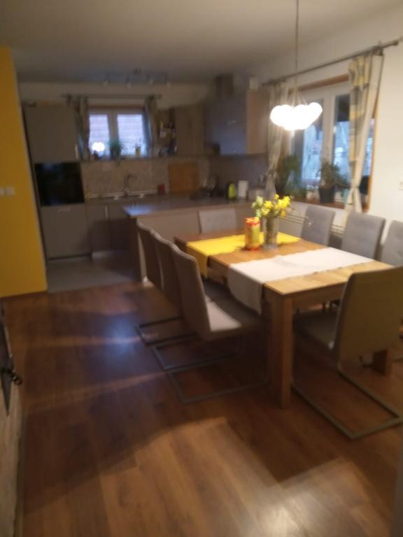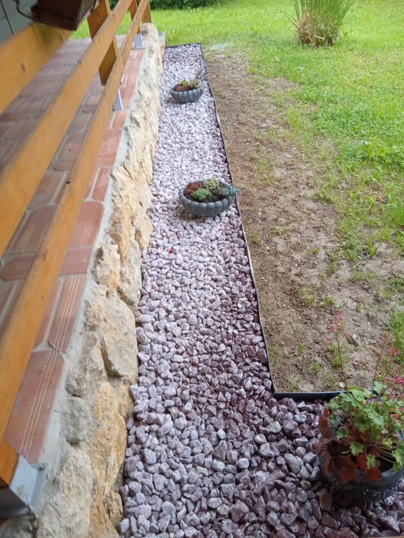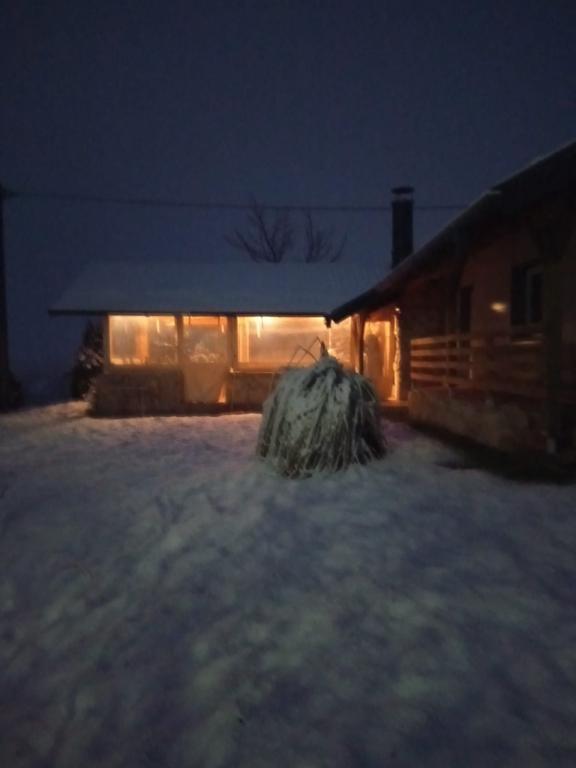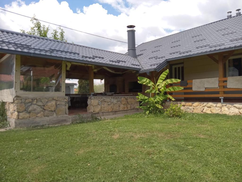Kuća za odmor nalazi se na malom brdu s prekrasnim pogledom na sutlansku dolinu i Sloveniju. Ova montažna kuća sadrži 2 spavaće sobe, jednu kupaonu s tuš kabinom i podnim grijanjem, veliku dnevnu sobu s TV-om i pristup na MAX tv i WIFI, velika kuhinja sa opremom za kuhanje i perilicom suđa. U dnevnoj sobi postoji veliki kaljev kamin na drva, a kuća ima plinsko centralno grijanje. Uz kuću je prislonjena natkrivena vanjska terasa u kojoj se nalazi veliki ražanj/roštilj i krušna peč. Terasa može primiti do 20 osoba. Iza kuće postoji mjesto namjenjeno za parking više vozila.