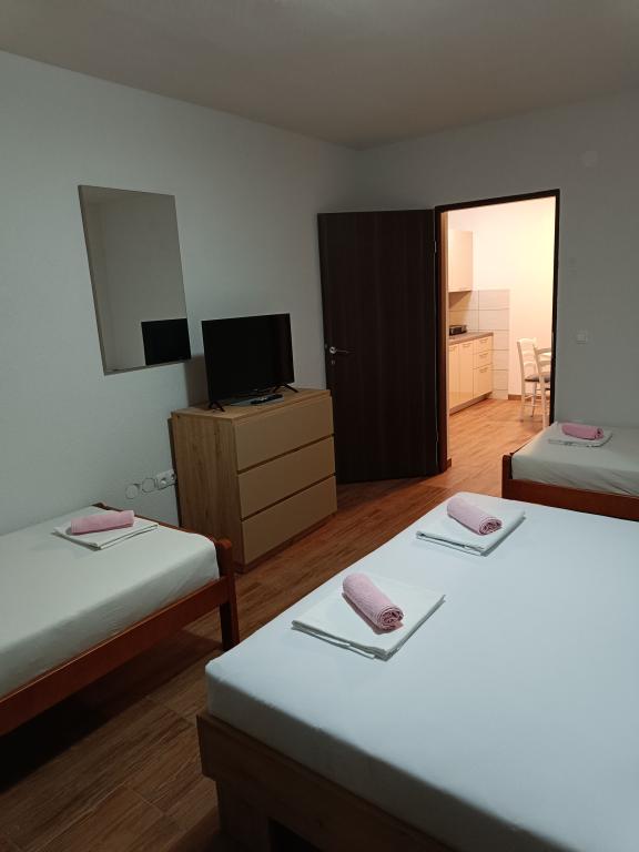 Pročitaj više Smještajne jediniceVrijeme dolaska je u 14:00 h Vrijeme odlaska je u 10:00 h Apartman se plaća po dolasku,a za rezervaciju obavezno uzimamo akontaciju!