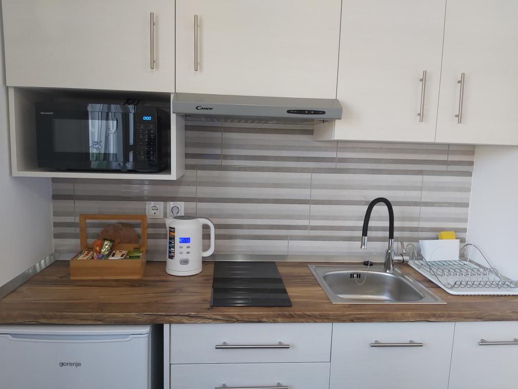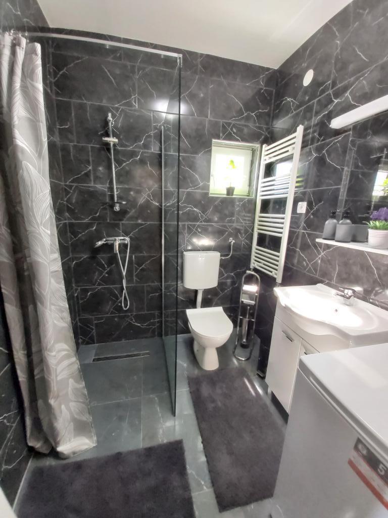 Novi, potpuno opremljeni studio apartman. Namijenjen je za dvoje ljudi, s kompletno opremljenom kuhinjom (mikrovalna. hladnjak, ploča za kuhanje, kuhalo za vodu...), kupaonicom s walk-in tušem i perilicom rublja, blagovaonicom, udobnim bračnim krevetom, ormarima, TV (Netflix račun uključen) i opremljenom terasom. Besplatan WIFI. Tiho i mirno susjedstvo, idealno za odmor te nedaleko javnog prijevoza (vlak, autobus). Osigurano parkiralište. Moguć je najam i dnevnog odmora bez noćenja.