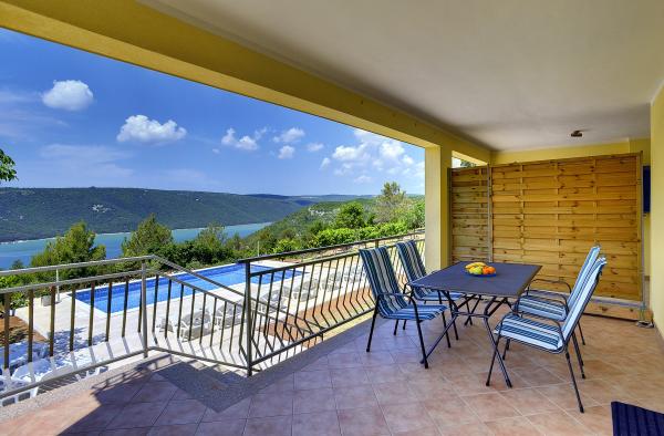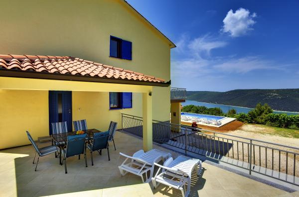Ova kuća smještena je na brežuljku u mjestu Trget, gdje se pruža prekrasan pogled na Raški zaljev. Oduševiti će Vas mirna okolica posebice pogodna za obitelji s djecom. Za sve goste parking je osiguran. Na raspolaganju Vam stoje vezovi za brodove do 10 m duljine. Okolica je prekrasna i idealna je za rekreativce, koji će ovdje imati obilje prostora gdje će moći uživati u prirodi i svježem zraku. U neposrednoj blizini nalaze se dva izvrsna restorana i trgovina, a šljunčana plaža udaljena je svega 800 m od kuće. 12 km od mjesta Trget udaljen je obližnji gradić Labin sa mnogo kulturnih i turističkih sadržaja. 20 km od mjesta Trget moguće je razgledavanje špilja za ljubitelje speleologije.