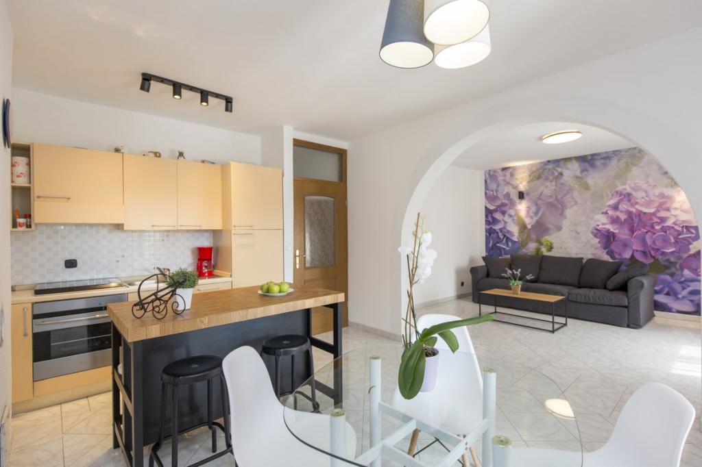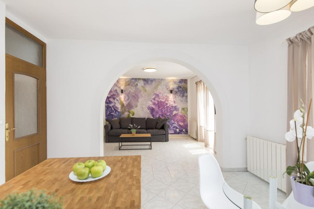 Apartman je smješten na imanju vlasnika. Imanje ima 2 kuće u kojoj Vlasnika Line živi i njena kćerka. Lokacija apartmana je u selu Ripenda 1km od starog grada Labine te 4km od Rapca i plaža. Mjesto je mirno i lokacija same kuće omogučuje da uživate u privatnosti i miru