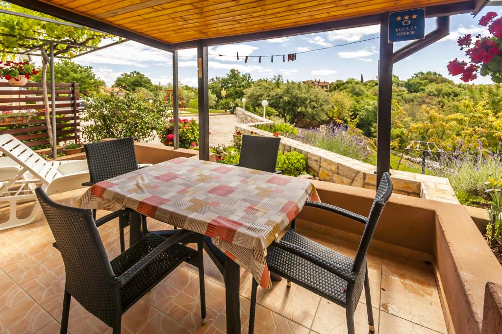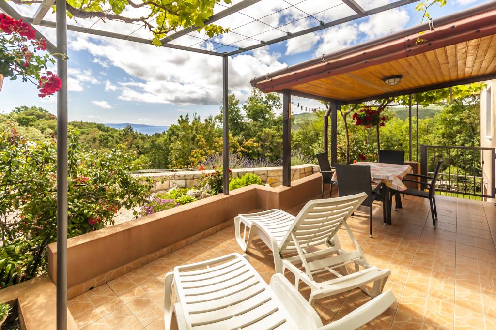 Ova mala romantična kuća s pogledom na more smještena je na mirnoj lokaciji, okružena zelenilom, samo 5 minuta udaljenosti od mora i 5 minuta do starogradske jezgre grada Labina. Sa terase kuće pruža se prekrasan pogled na more i Kvarnerske otoke. Ima jednu spavaću sobu, kuhinju, dnevni boravak sa velikim kaučem na razvlačenje i kupatilom. Ispred kuće je prostrana terasa sa vrtnim roštiljem i ležaljkama. Kuća je opremljena klima uređajem, satelitskom TV, pećnicom, mikrovalnom, aparatom za filter kavu, perilicom rublja i sušilom za kosu i besplatnim WI-FI.