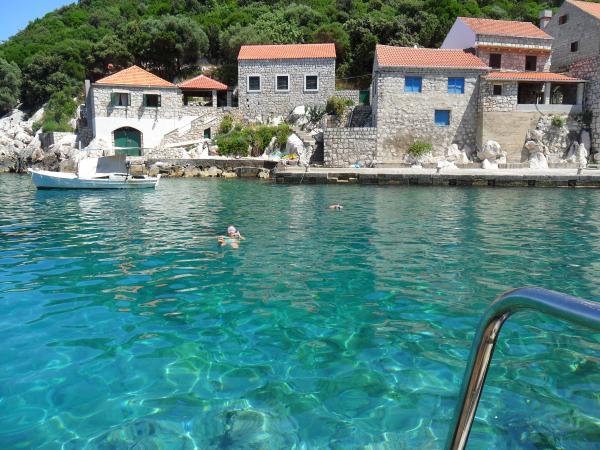 Apartmani Simić nalaze se u mirnoj, atraktivnoj uvali Lučica na 10 metara od mora. Iza apartmana 2 plus 1 nalazi se terasa u vrtu i poseban izlaz sa stepenicama do mora. Na 5 metara od mora nalazi se velika terasa, dostupna za oba apartmana. Opremljena je sa ležaljkama, stolovima i stolicama, suncobranima i vanjskim tušem. Dostupan je i vanjski roštilj, vez za brod i zajednički parking na 15 metara od kuće.