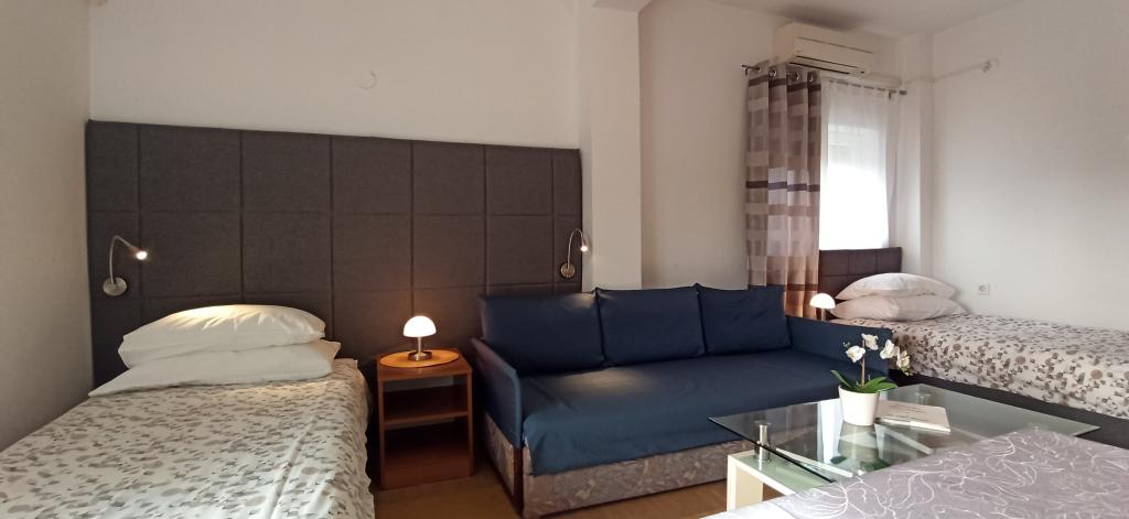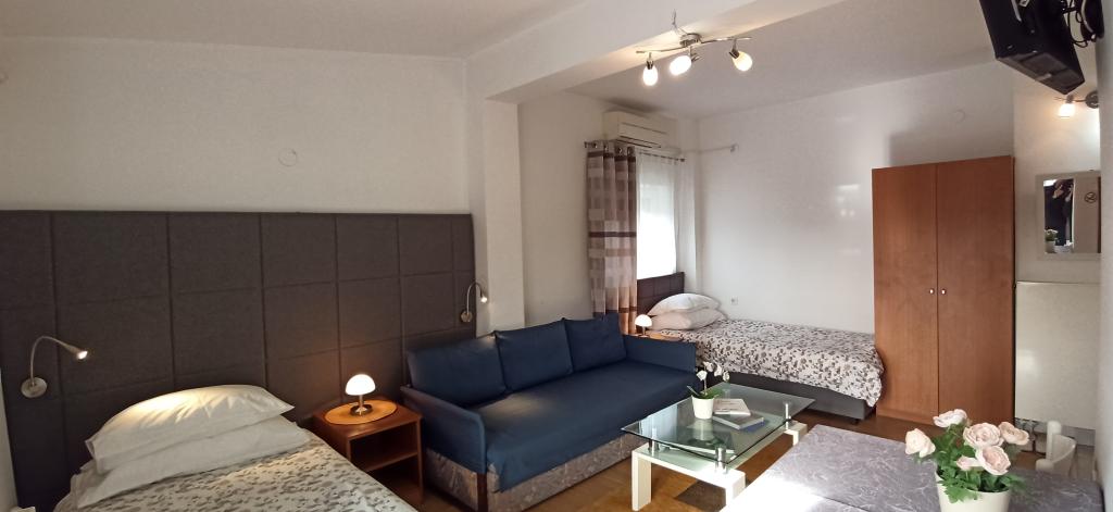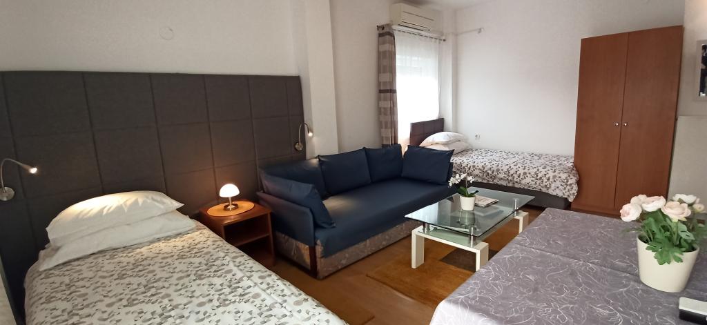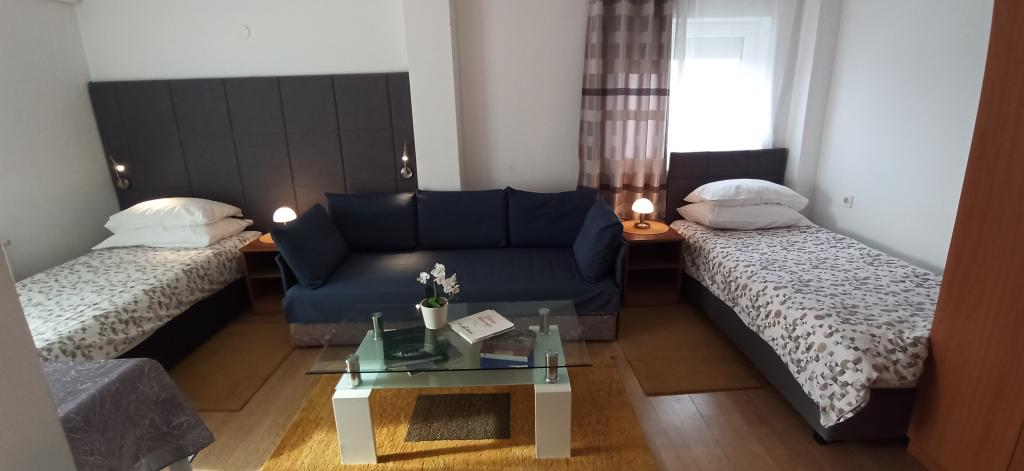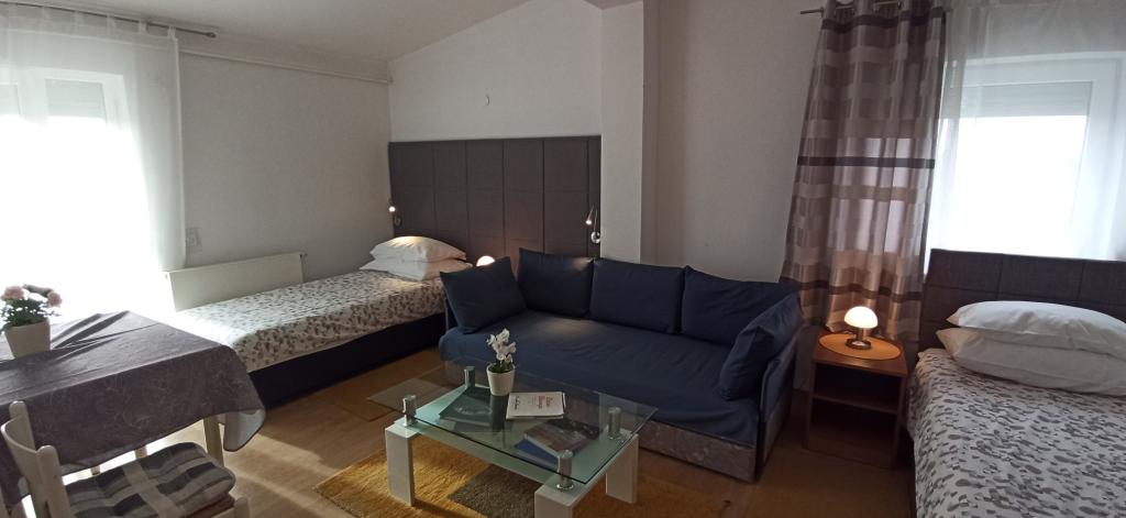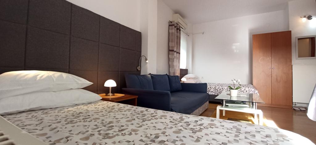 Obiteljska kuća je smještena uz povijesni perivoj i kompleks otvorenih bazena Lipik. Imamo ukupno 5 studioapartmana. Dva studio apartmana za ukupno sedam osoba može biti smještaj za Vašu obitelj u mirnom dijelu Lipika. U blizini smo i Toplica Lipik te često pružamo i smještaj za pacijente i obiteljsku pratnju. Studio apartmani su na katu, a uređeno dvorište je na raspolaganju za igru i zabavu Vaših najmlađih. Studiopartmani su opremljeni klimom, centralnim grijanjem, a terasa ima pogled na bazene i park. Flat optički internet je besplatan i slobodan za korištenje.