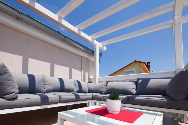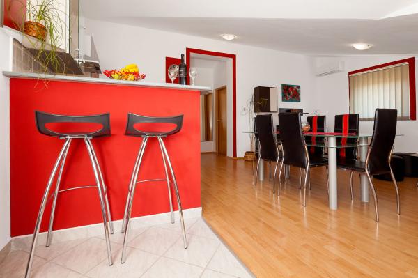 Imali smo dva prekrasna tjedna (dvoje odraslih i dvoje tenager) u ovom modernom i veliki odmor. Stan je u potpunosti namješten i uklapa savršeno našem obiteljskom odmoru. Opis internet i stan su bili identični. Imali smo naš auto i bicikl s nama i to je bilo važno doći na plažu. Maria, Denis i Dana gdje je vrlo ljubazan i nas podržali odgovoriti na naša pitanja i da imaju veliki roštilj (s puno priče). Hvala vam puno na velikoj vrijeme.