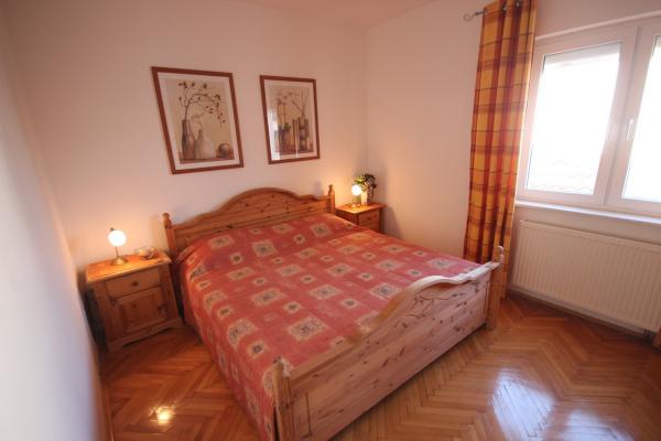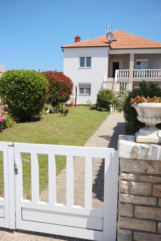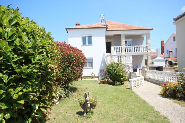 Novouređen apartman s klimom i internetom, s lijepim pogledom na more, u blizini pješčane plaže 1. kat – veličina cca 100qm AP/4, 2 sobe s bračnim krevetom, veliki dnevni boravak s kuhinjom i blagovaonicom, kauč, kupaonica ( kwc ), natkriven balkon cca 10qm s pogledom na more. Opremljenost apartmana: SAT-TV, klima, kuhinja s perilicom suđa, štednjakom ( struja/plin ), pećnicom, veliki hladnjak s ledenicom, mikrovalna, aparat za kavu. Dječji krevetić ( bez nadoplate ) se može ubaciti u jednu od soba. Gosti imaju osiguran parking ispred kuće i grill na korištenje.