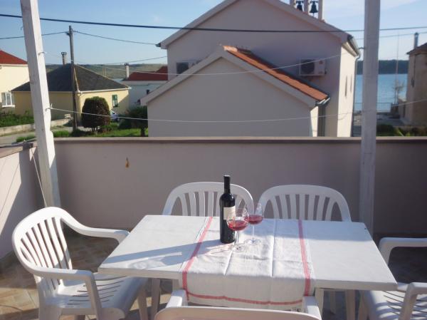 Apartman se nalazi u samom srcu mijesta. More i plaža su udaljeni samo 2 minute hodom. Apartman ima kuhinju i dnevni boravak spojeno u jedno cca35m2 2 spavače sobe i wc, i dva balkona jedan ima 3m2 a drugi cca 25m2. Sa jednog balkona se vidi more a sa drugog balkona pogled na Velebit more se vidi sa većeg). Apartman je uređen suvremeno sa svim kućanskim aparatima. U sklopu Apartmana postoji prostorija sa kominom gdje se može spremati roštilj.