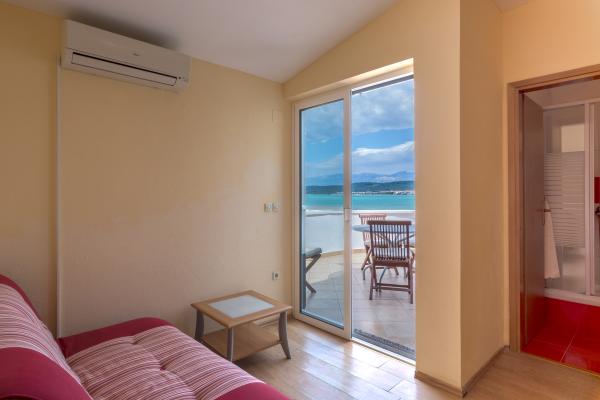 Poštovani gosti, Ako ikako možete, nađite neki drugi smještaj, jer ovaj tzv. "apartman" nije za upotrebu. Nepodnošljiv miris u prostoriji, plijesan u tuš kabini, zidovi prljavi, namještaj loš. Plaža je blato, a slike su čisti photoshop. Gospođa Nada je ljubazna samo za sebe, prema nama je bila bezobrazna i još se ljutila jer smo joj za razgledavanje i provjetravanje tzv. apartmana, oduzeli 10 minuta iako smo tih 10 minuta platili 100 €. Draga gospođo Nada, kupite barem boju za zidove i osvježite prostor.