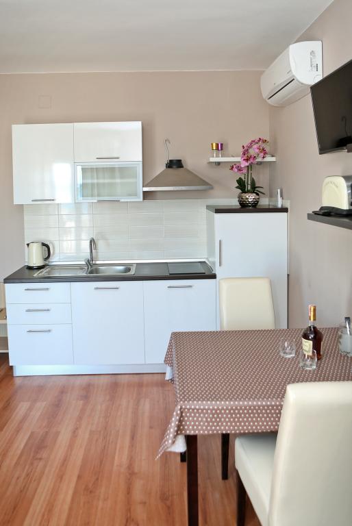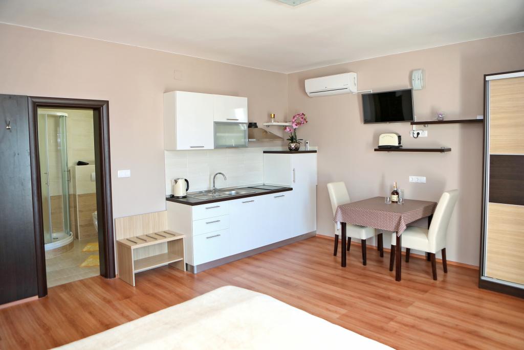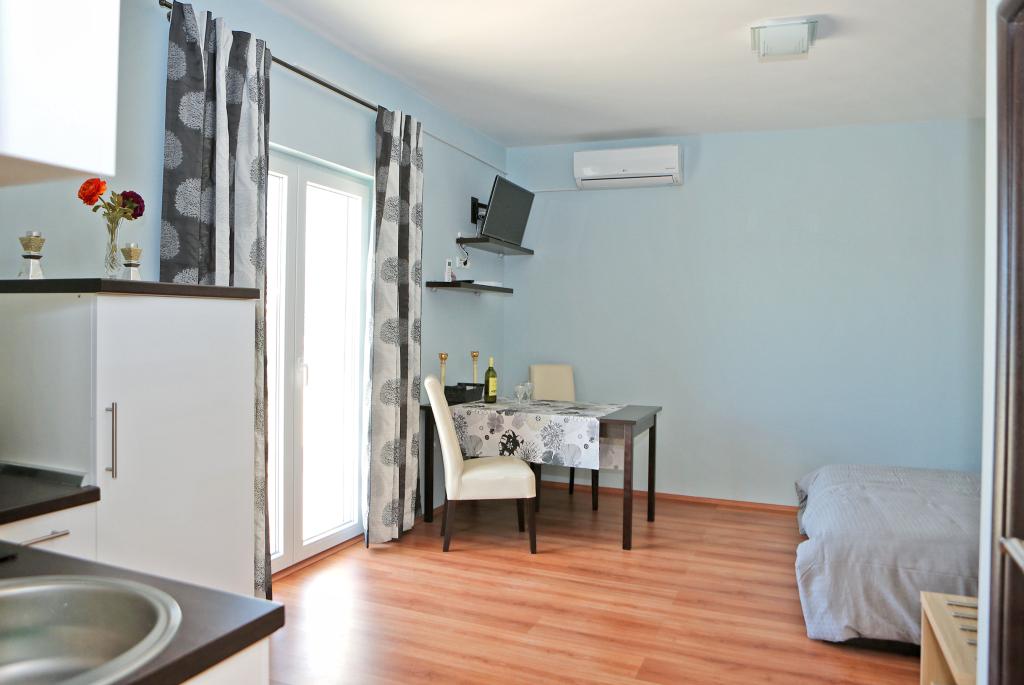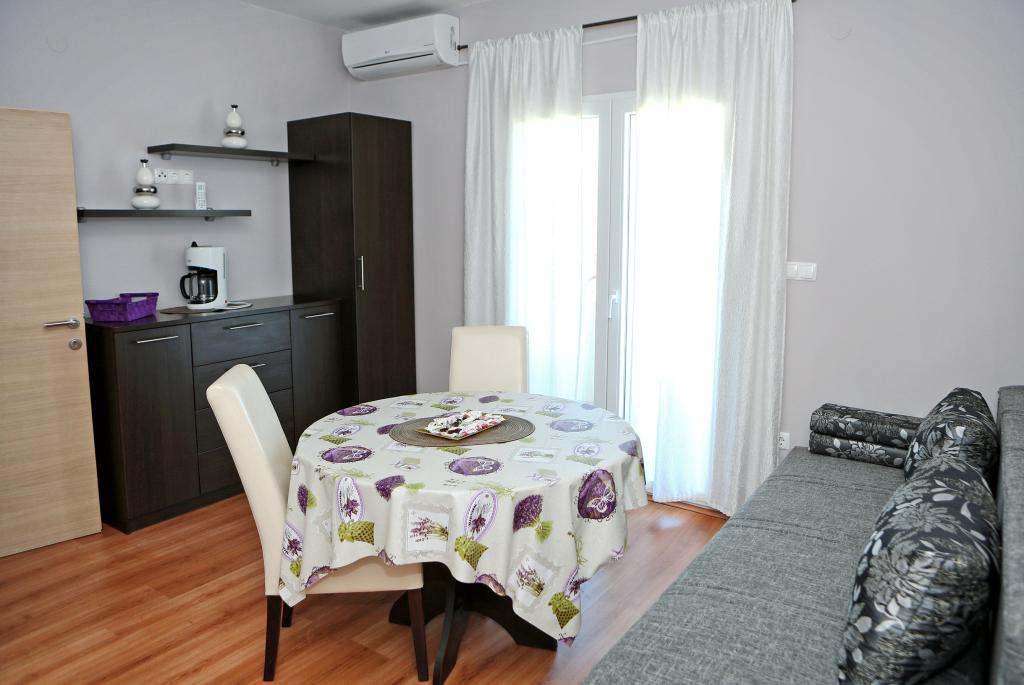 Pročitaj više Smještajne jediniceVrijeme prijave je nakon 13:30, a odjava do 10:00 sati. Boravišna pristojba je uključena u cijenu, mi brinemo o plaćanju za naše goste. Korištenje klime se dodatno naplaćuje 5€ po danu. Perilica se može koristiti za dva pranja za 5 € = 2,50 € po pranju. Akontacija za rezervaciju iznosi 20% od ukupnog iznosa.
