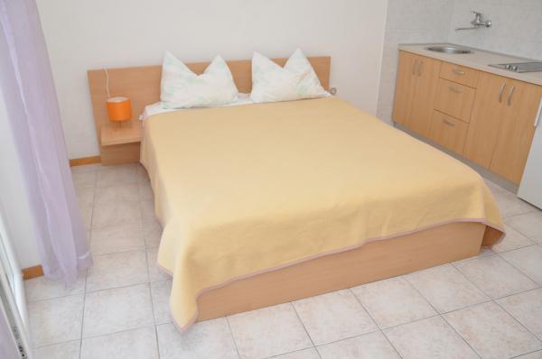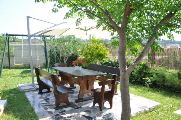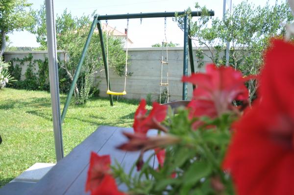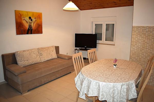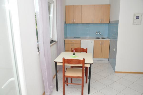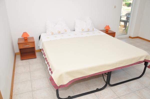Apartmani 2/1 su kompletno opremljeni, spavača soba mjesta za tri osobe (dječji krevetić na upit), dnevni boravak sa kuhinjom ima kauč, televizija, klima, internet i balkon. Studio idealno za dvoje, kompletno opremljeni, svaki studio ima balkon, klimu i internet. Kuća ima veliku okućnicu sa ograđenim dvorištem, gril, dječje igralište i parkiralište.