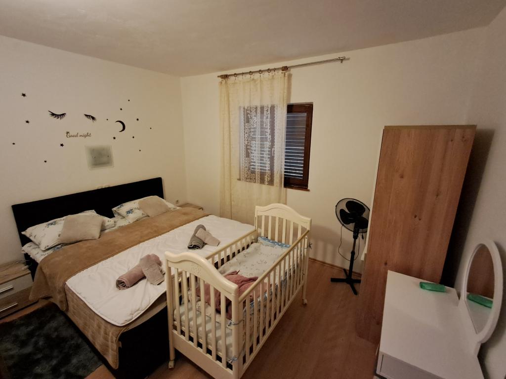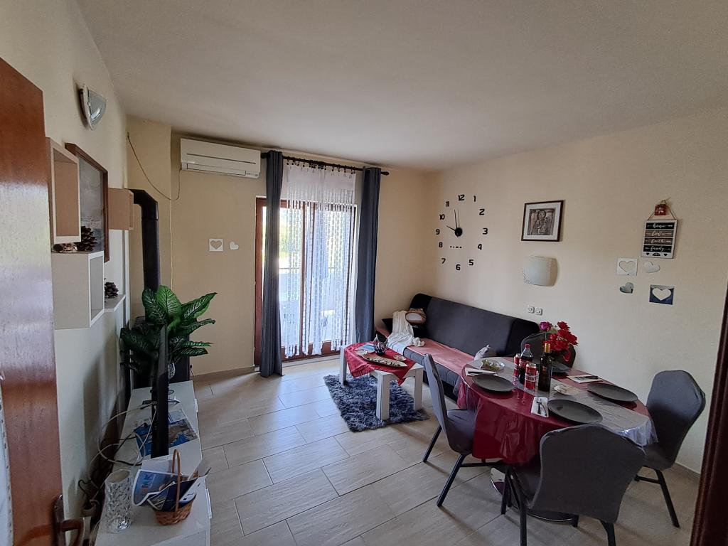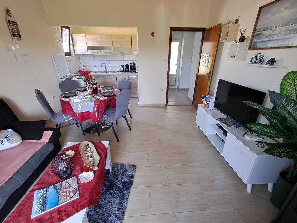 Apartman se nalazi u centru mjesta u blizini svih sadržaja pekarnice, trgovine, restorana. Do predivne rajske plaže koja je pogodna za malu djecu je 400 m niti 10 tak min lagane šetnje po novouređenoj setnici uz glavnu cestu.