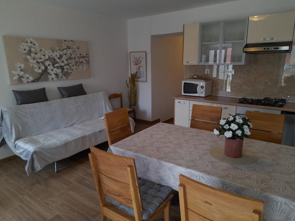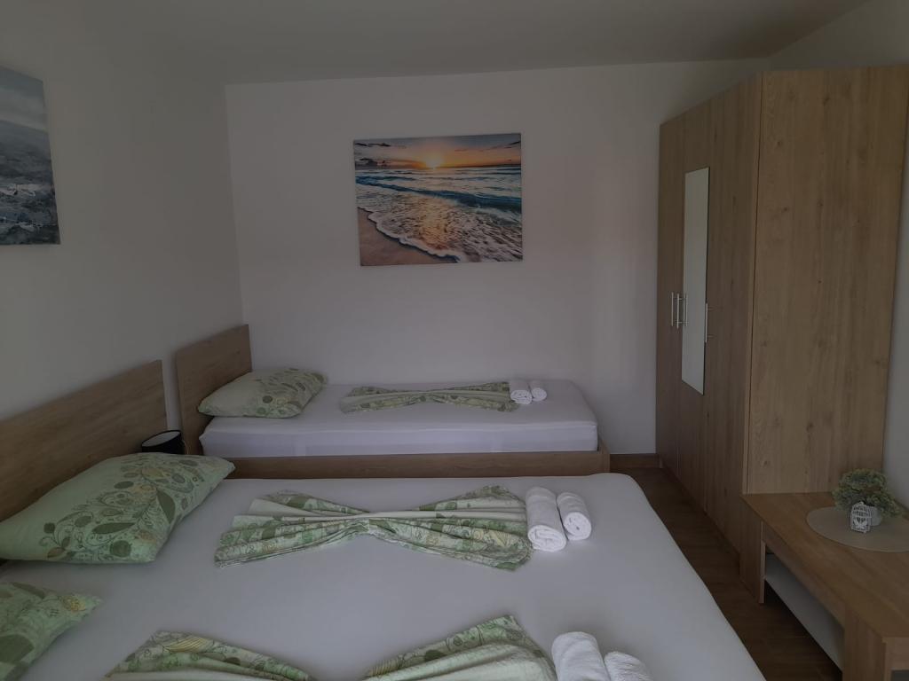 Turistička pristojba je uključena u cijenu.Čistoća, oprema vrlo prikladna, klimatizirani, kreveti su veliki, udobni. Domaćice su vrlo ljubazne i korisne u bilo čemu. Pješčana plaža udaljena je 5 minuta, s pogledom na more. Parkiralište je pomalo skučeno, ali barem u usporedbi s već uskom ulicom. Osobno ga mogu samo preporučiti.